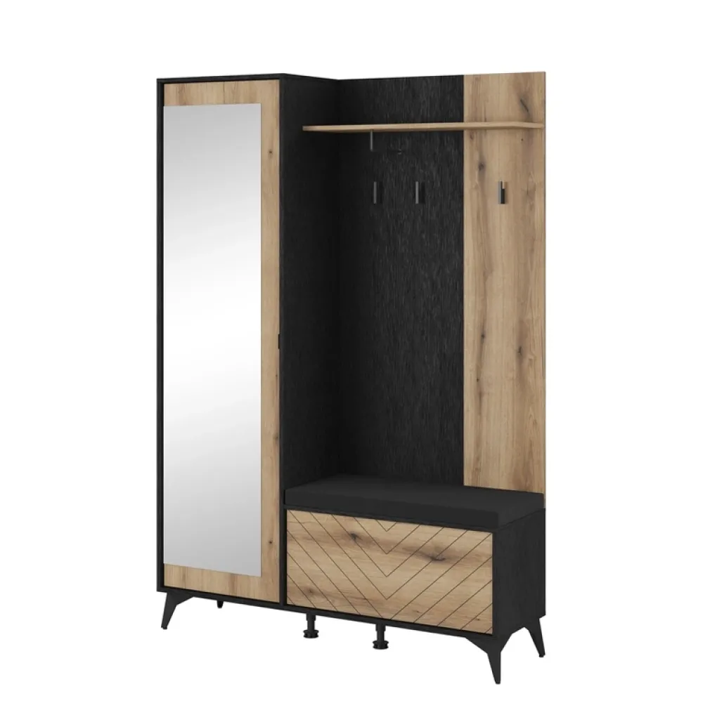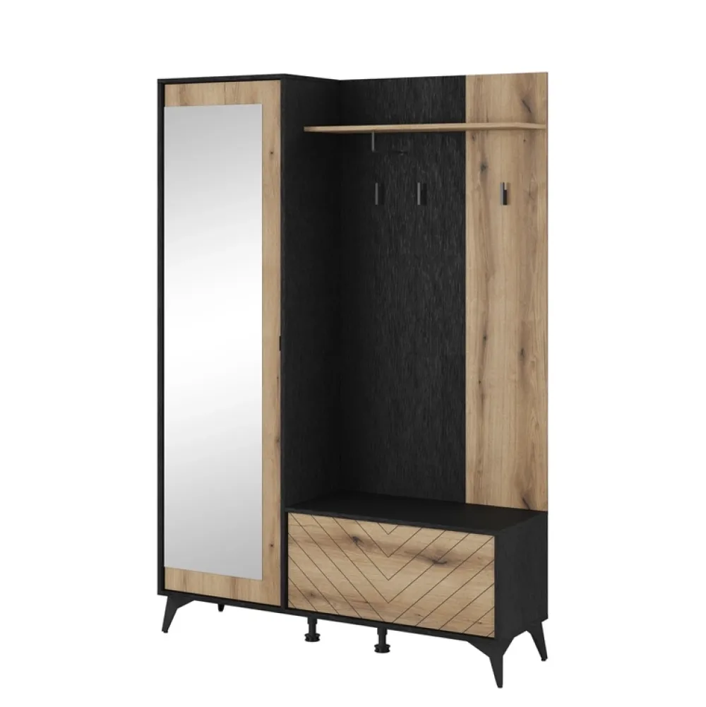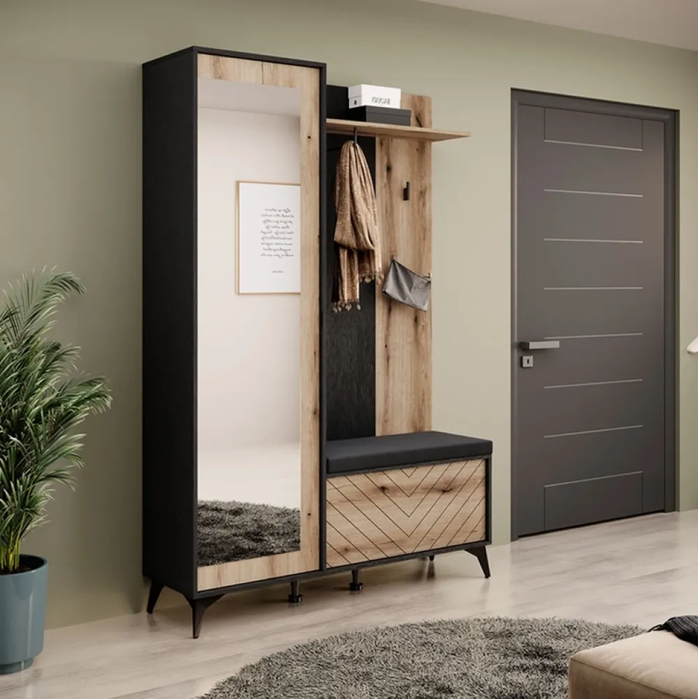 Prezentujemy naszą elegancką garderobę ALMAS, która łączy w sobie funkcjonalność z wyjątkowym stylem. Wykonana z trwałej płyty laminowanej, ozdobiona motywem jodełki na froncie, ta garderoba jest nie tylko praktyczna, ale i stanowi prawdziwą ozdobę wnętrza.
