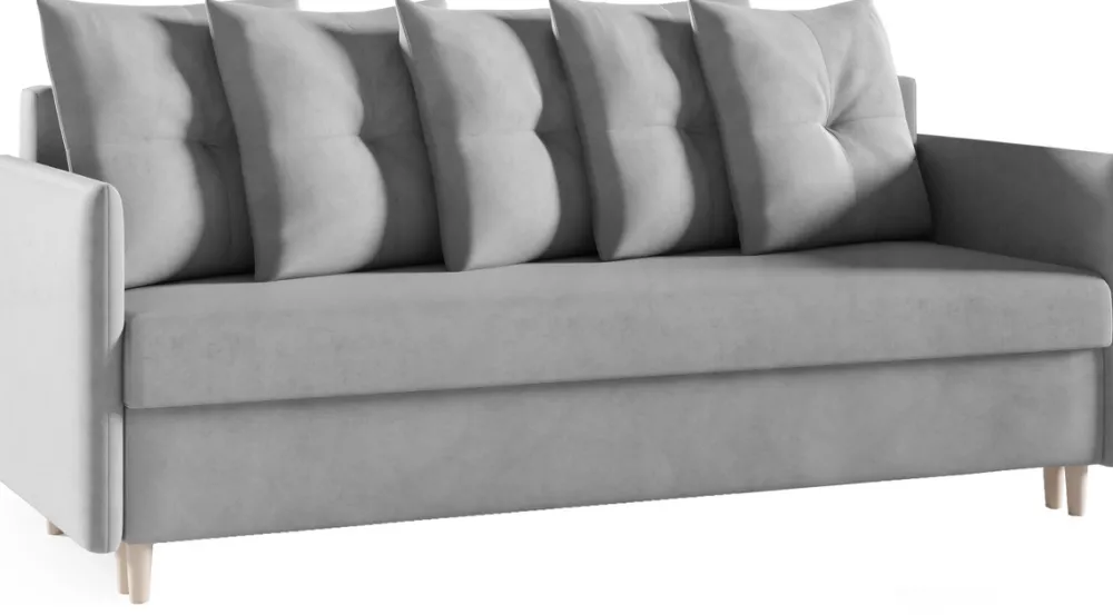 Warto również zwrócić uwagę na głęboki pojemnik na pościel, który został dyskretnie wkomponowany w konstrukcję kanapy. To niezwykle praktyczne rozwiązanie pozwala na przechowywanie pościeli lub innych przedmiotów, zachowując porządek i oszczędzając miejsce w Twoim salonie.