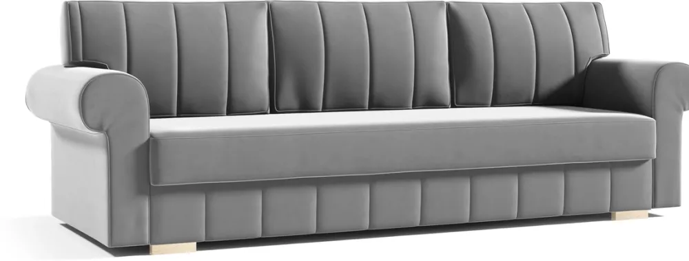 Nasza sofa wyposażona jest w system rozkładania DL, który umożliwia jej łatwą i szybką transformację w wygodne miejsce do spania. Sprężyny bonell w połączeniu z pianką PUR gwarantują optymalne wsparcie i komfort, niezależnie od tego, czy sofa jest używana do siedzenia, czy spania. Dodatkowym atutem jest głęboki pojemnik na pościel, który pozwala na praktyczne przechowywanie pościeli bez zabierania dodatkowego miejsca w pomieszczeniu. Komplet trzech poduch oparciowych nie tylko zwiększa komfort użytkowania, ale również dodaje sofcie eleganckiego wyglądu, co sprawia, że staje się ona nie tylko meblem użytkowym, ale również istotnym elementem dekoracyjnym każdego salonu.