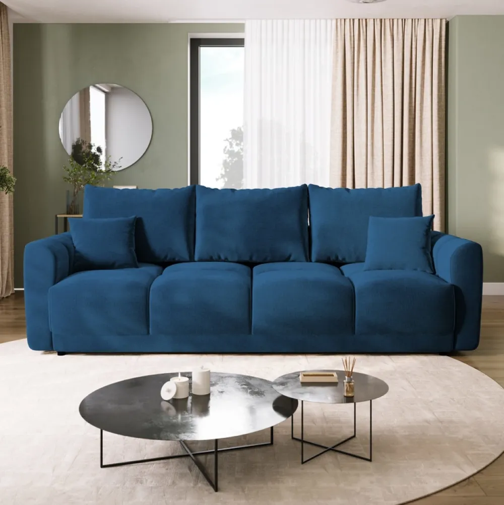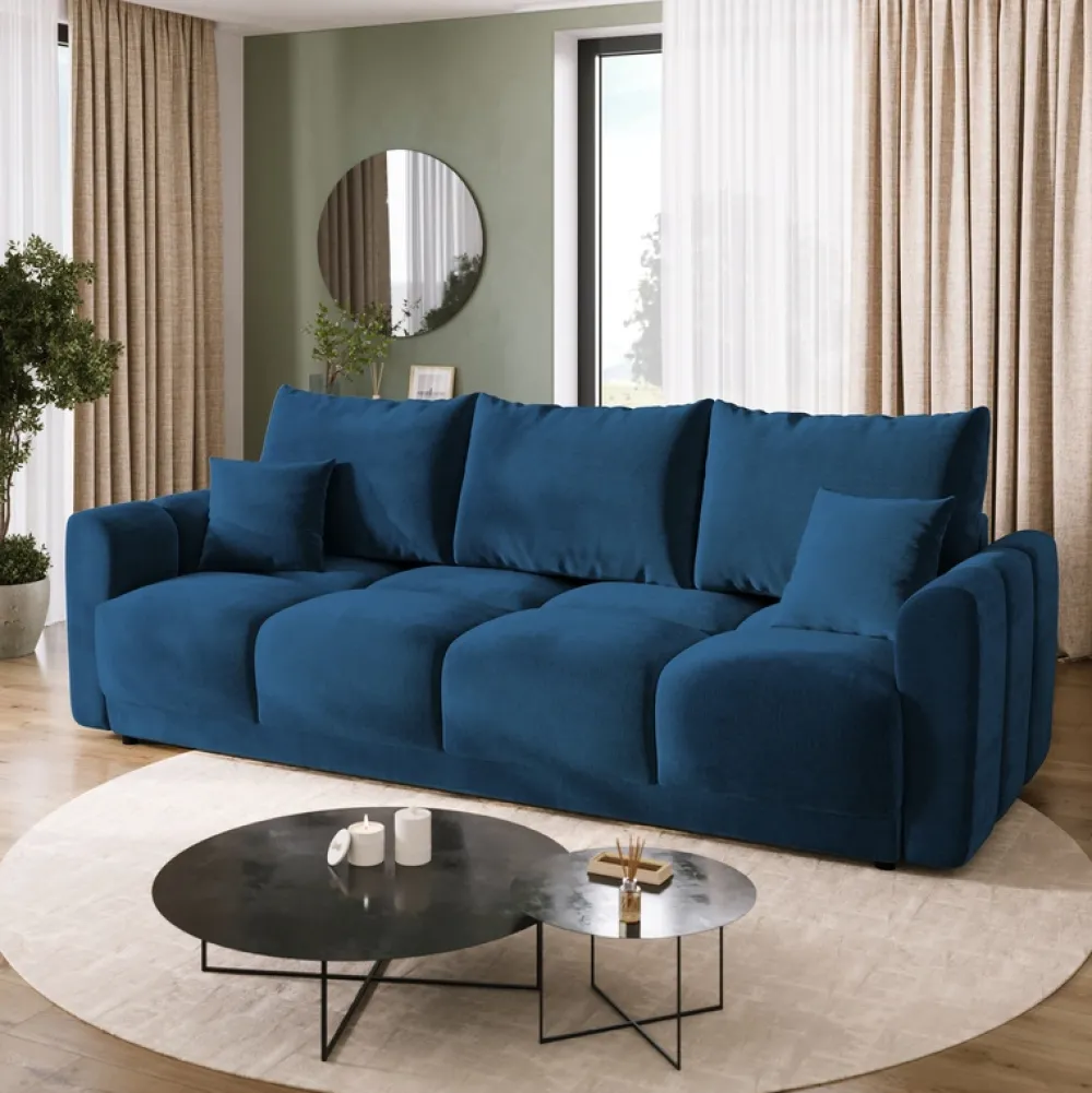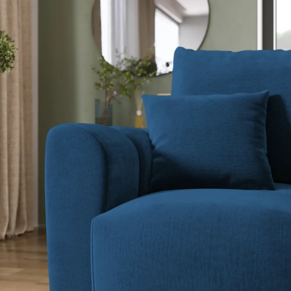 Do kanapy dołączono trzy poduchy, które nie tylko zwiększają komfort siedzenia, ale także dodają rozkładanej kanapie przytulności i elegancji, stanowiąc piękny element dekoracyjny.