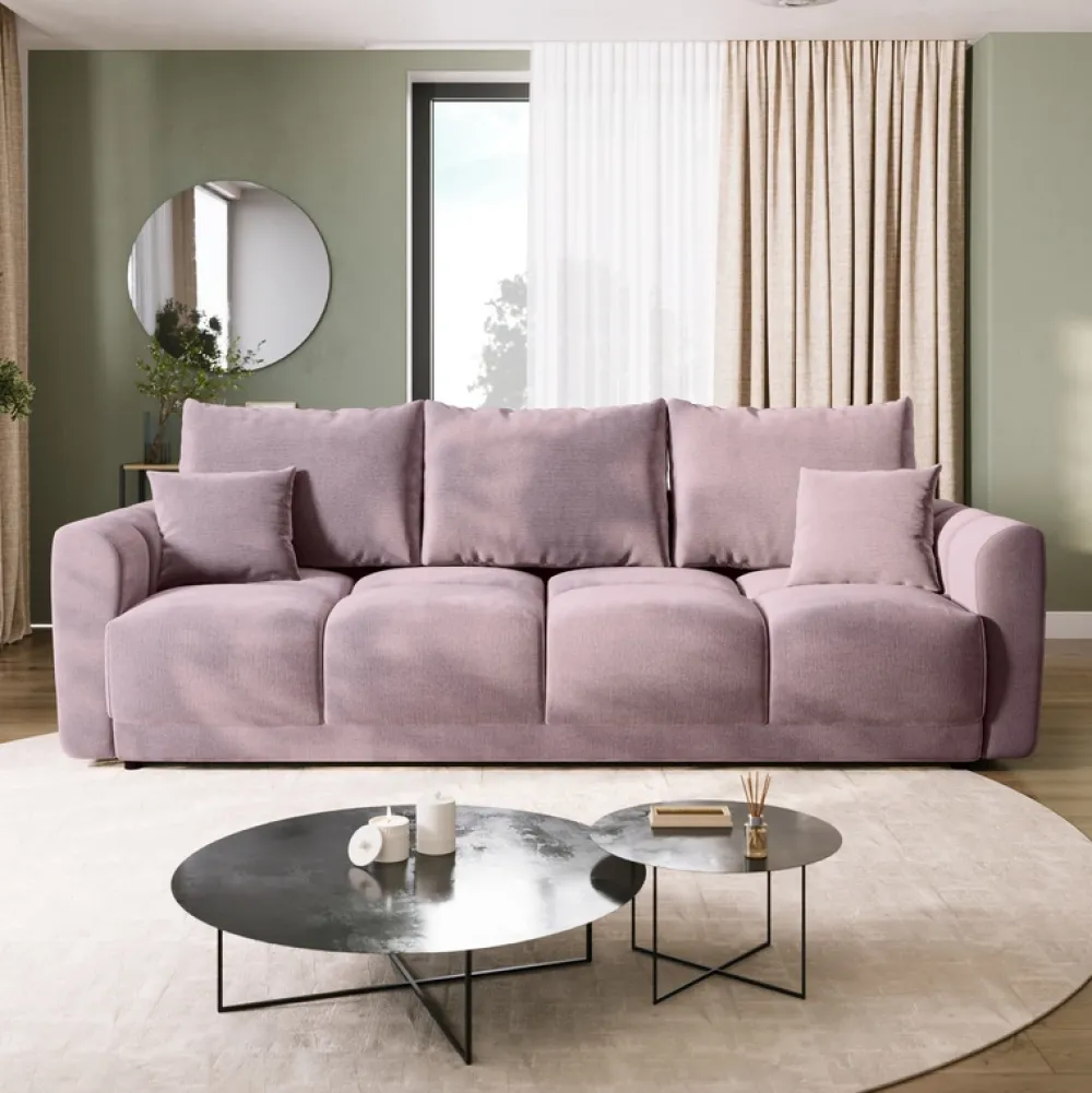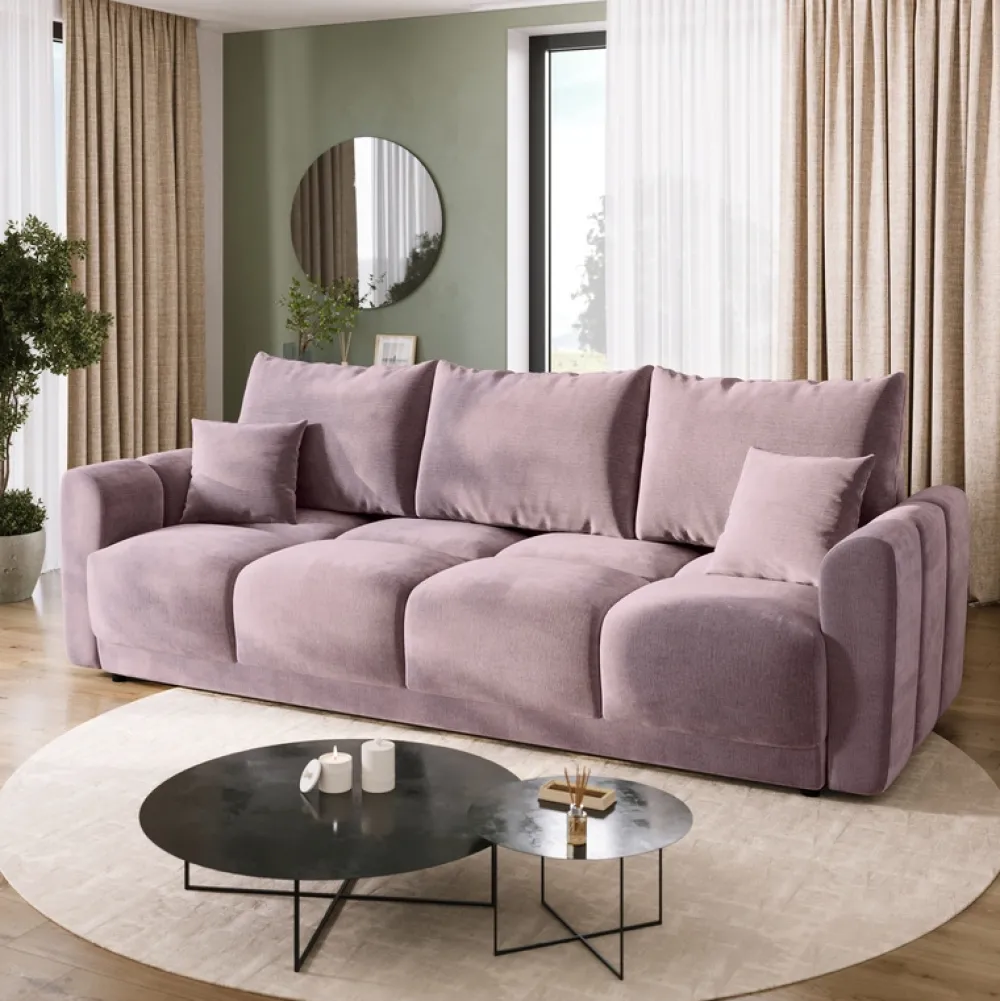 - Wprowadź do swojego salonu niepowtarzalny design z rozkładaną sofa NUBES. Sofa z funkcją spania, posiada głęboki pojemnik na pościel, trzy duże poduchy oparciowe oraz siedzisko wypełnione pianką wysokoelastyczną. Nóżki wykonane są z tworzywa sztucznego.