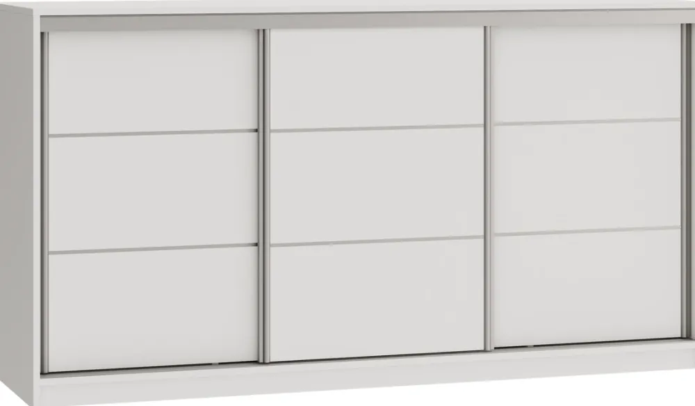 Komoda przesuwna TOP o szerokości 180 cm to propozycja, która łączy elegancki wygląd z praktycznymi rozwiązaniami. Trzy drzwi osadzone na metalowym systemie przesuwnym w srebrnym kolorze wprowadzają nowoczesny akcent i gwarantują łatwy dostęp do przechowywanych rzeczy