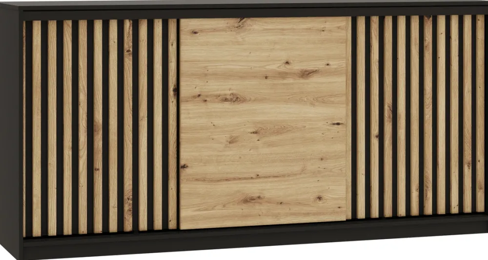 Komoda przesuwna z lamelami 200 cm LOFT to doskonały wybór do sypialni, garderoby lub przedpokoju. Jej przemyślana konstrukcja i pojemność pozwalają na wygodne przechowywanie ubrań i akcesoriów, a nowoczesny design sprawia, że komoda staje się centralnym punktem wnętrza, dodając mu charakteru i wyjątkowego stylu.