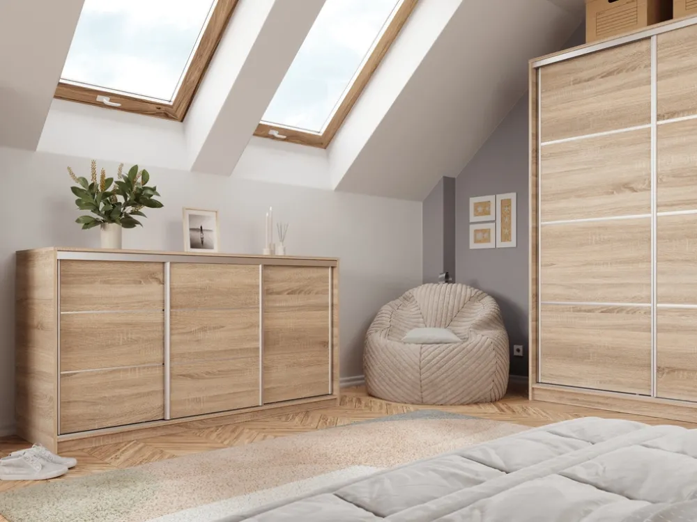 - Samodomykacze do drzwi – Możliwość doposażenia w dedykowane spowalniacze do drzwi przesuwnych, które działają na zasadzie cichego domyku. Pozwalają one na uniknięcie trzasków, niedomkniętych drzwi oraz uderzania drzwiami o korpus komody – Zdecydowanie polecamy!
