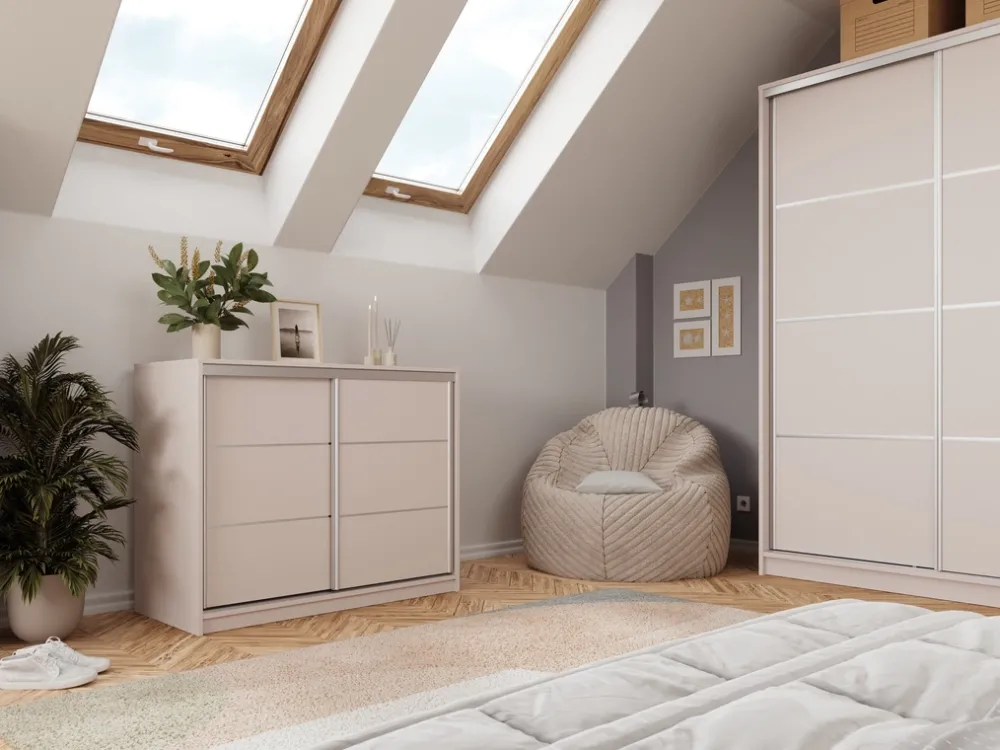 - Samodomykacze do drzwi – Możliwość doposażenia w dedykowane spowalniacze do drzwi przesuwnych, które działają na zasadzie cichego domyku. Pozwalają one na uniknięcie trzasków, niedomkniętych drzwi oraz uderzania drzwiami o korpus komody – Zdecydowanie polecamy!