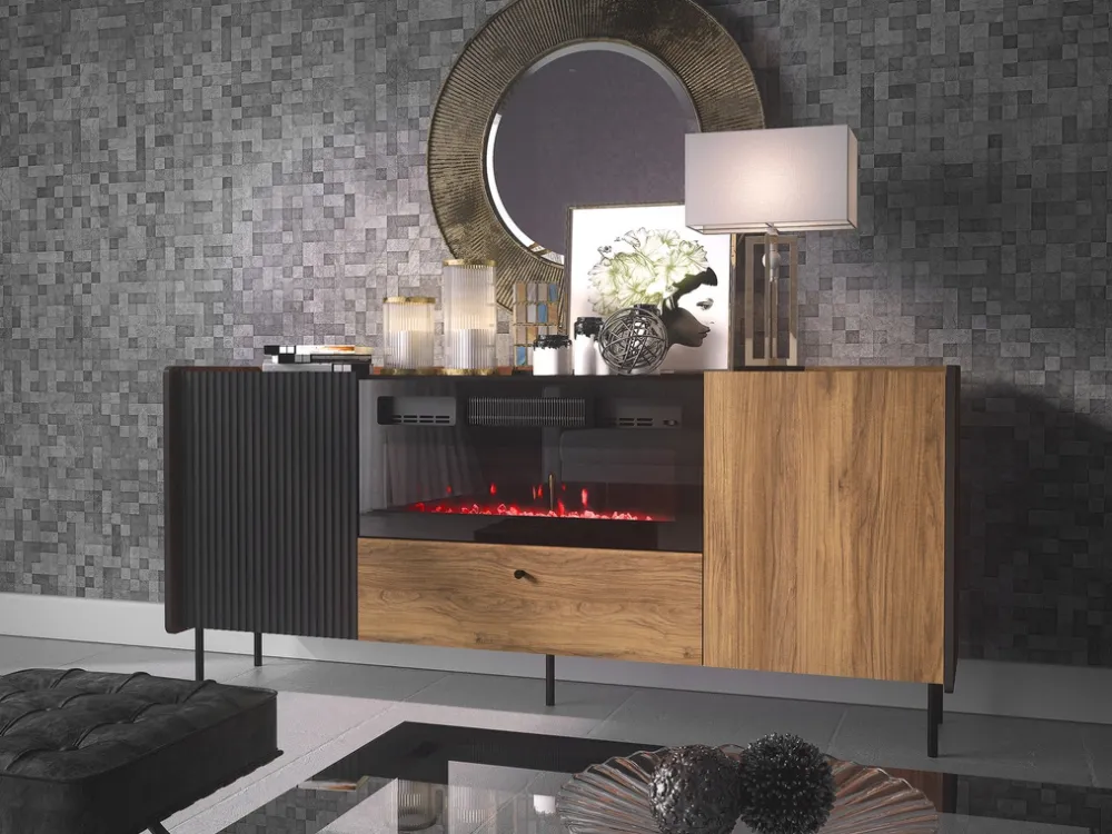 Przedstawiamy elegancką dwudrzwiową komodę PINNACLE wraz z elektrycznym kominkiem w zestawie, która jest kwintesencją nowoczesnego designu i funkcjonalności. Idealna dla tych, którzy cenią sobie połączenie klasyki z nowoczesnymi technologiami, ta komoda przynosi ciepło i styl do każdego wnętrza, zapewniając jednocześnie praktyczne miejsce do przechowywania.