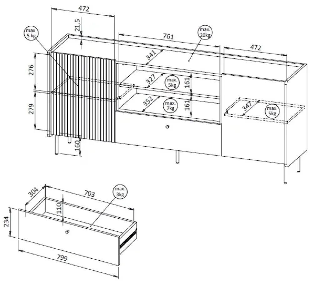 Komoda wykonana została z 16 mm płyty laminowanej, co gwarantuje jej trwałość i odporność na codzienne użytkowanie. Krawędzie mebla zabezpieczono okleiną PCV, co zwiększa jego wytrzymałość i zapewnia dodatkową ochronę przed uszkodzeniami. Dzięki temu nasza komoda służyć będzie przez wiele lat, zachowując przy tym swój nienaganny wygląd.