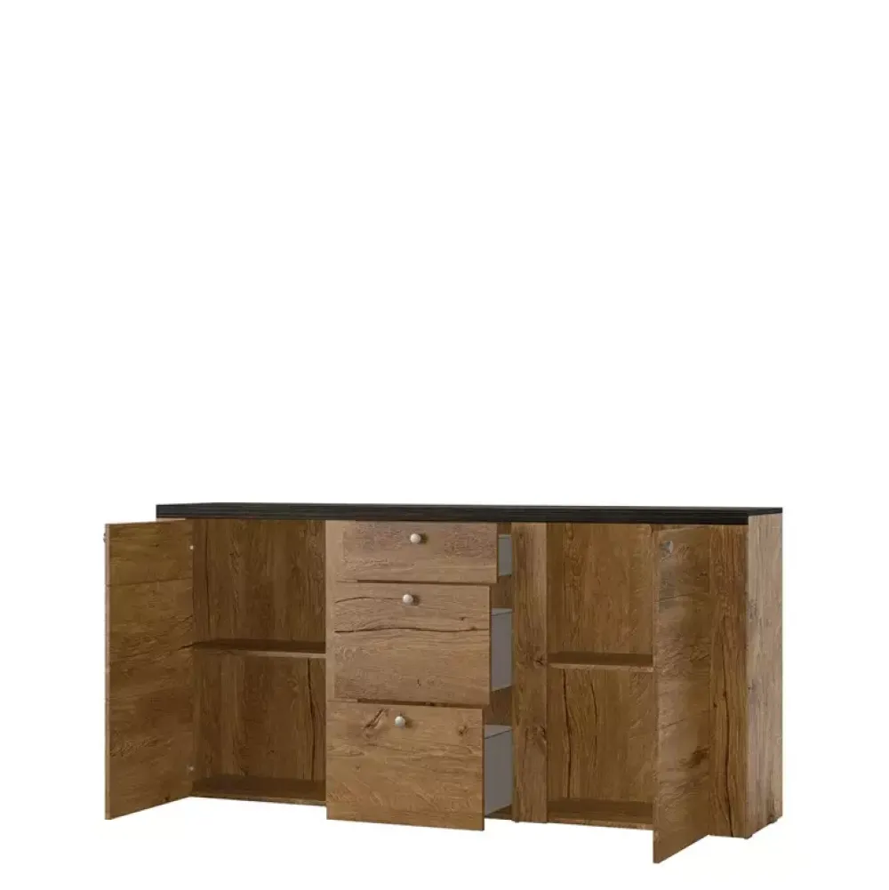 - Komoda o szerokości 176 cm dwudrzwiowa z trzema szufladami.