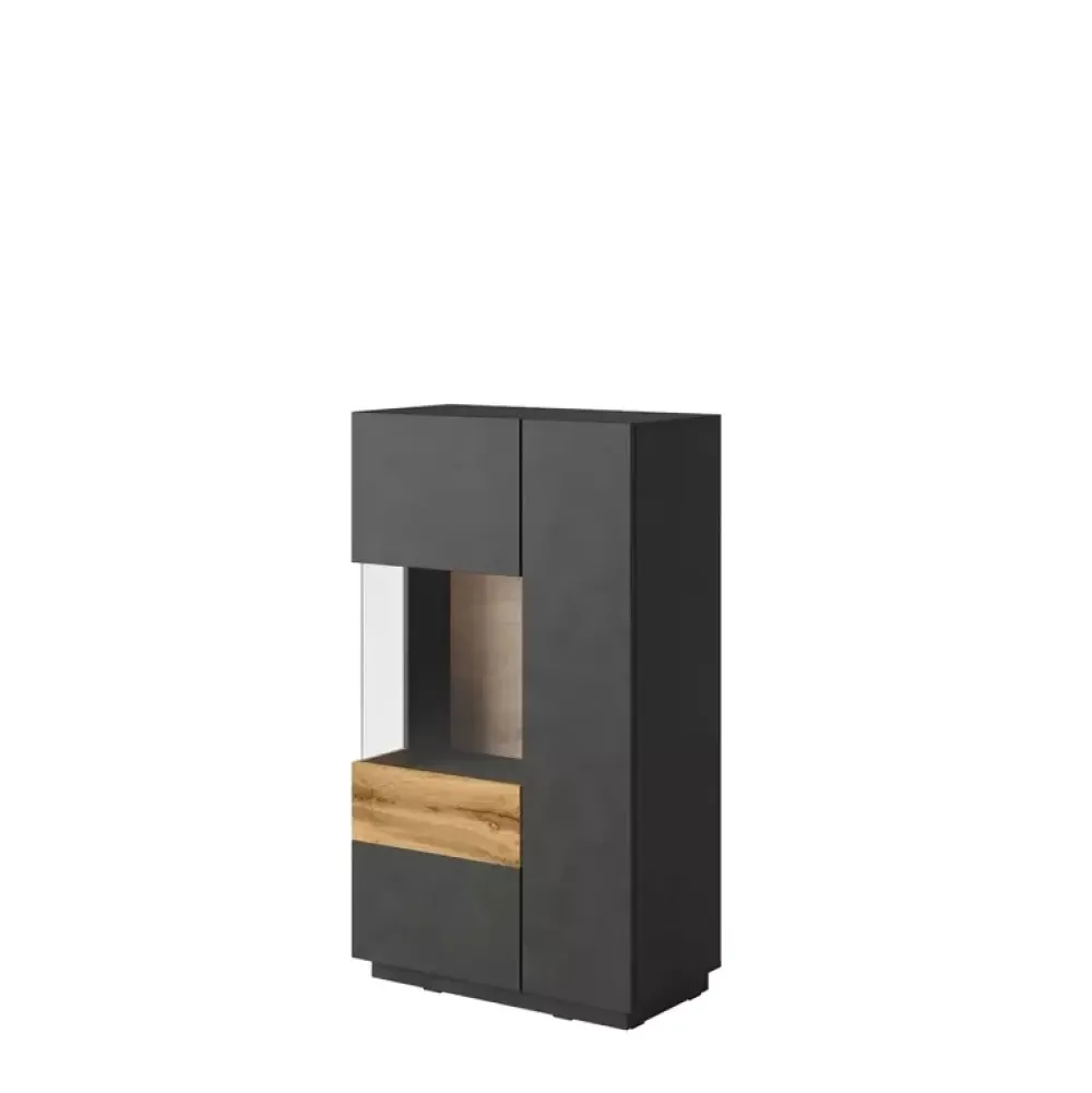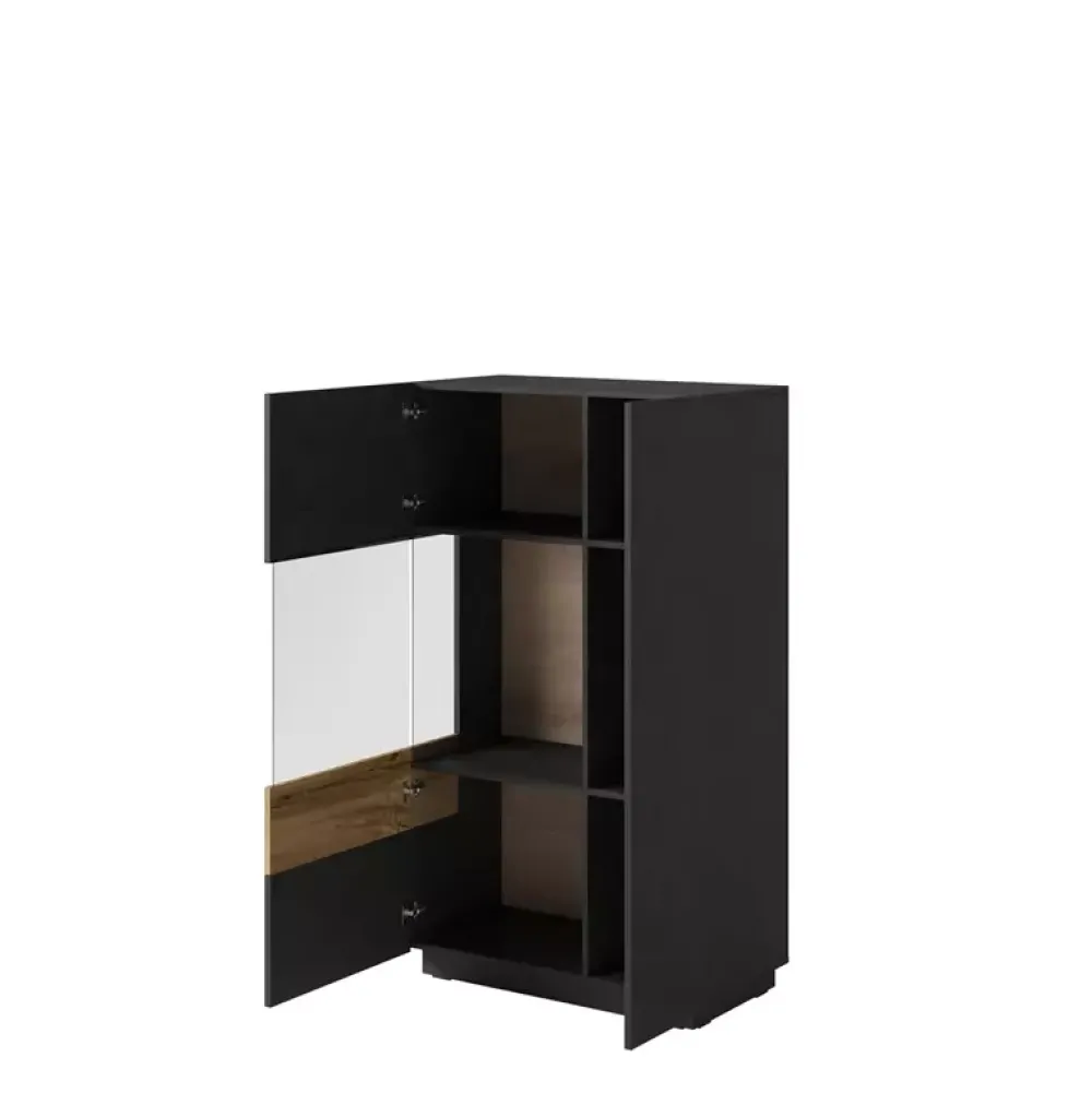 - Wysoka komoda z witryną o szerokości 80 cm z drzwiczkami lewostronnymi.
