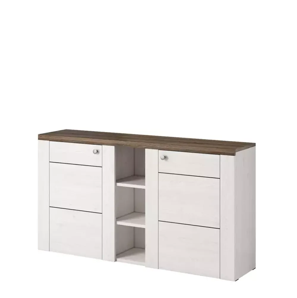 - Komoda o szerokości 155 cm dwudrzwiowa z otwartą półką.