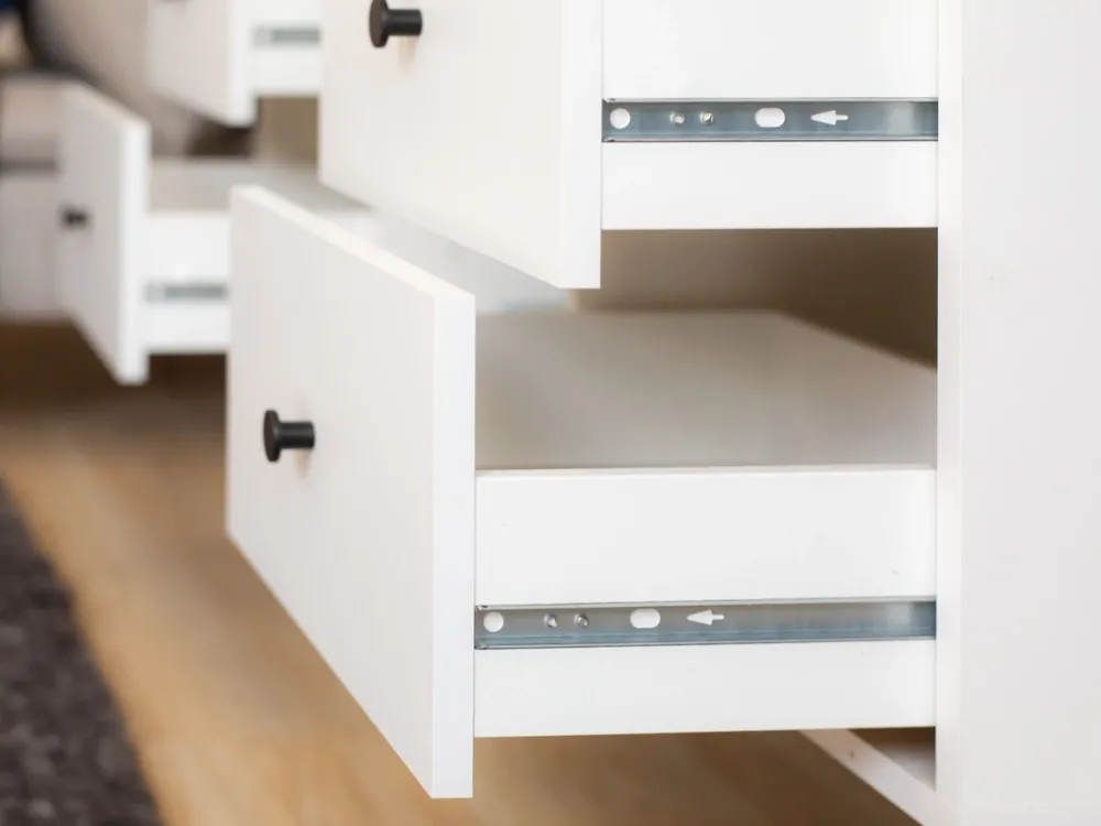 - Prowadnice kulkowe i zawiasy puszkowe – gwarantują płynne i ciche użytkowanie