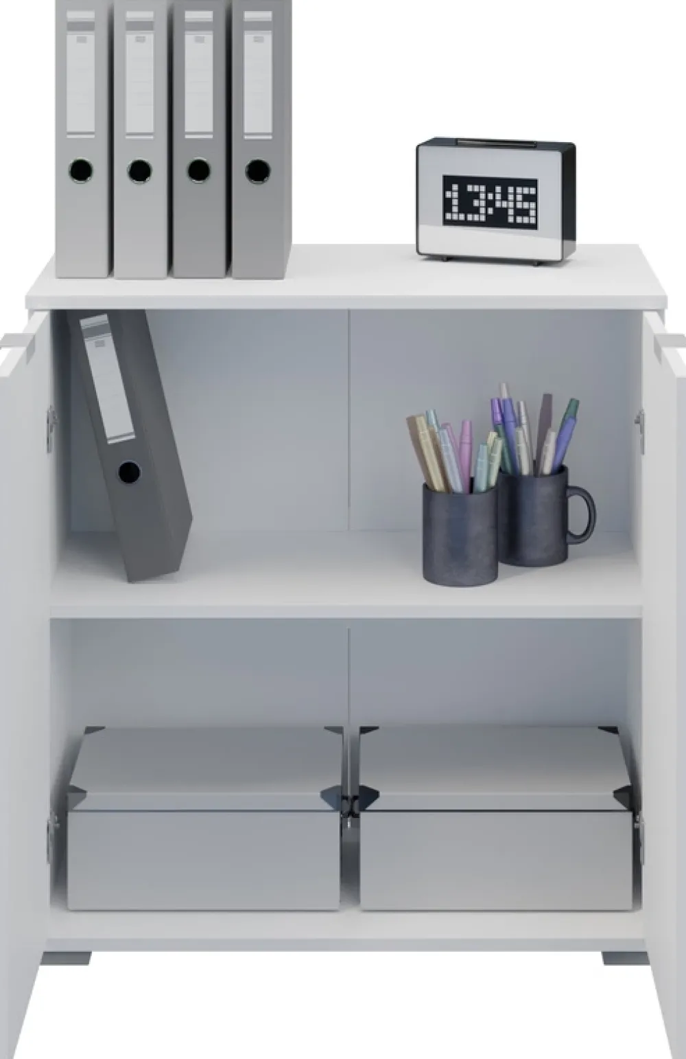 - Komoda ELARO 71 cm w kolorze białym to praktyczne rozwiązanie do małych wnętrz. Kompaktowa i elegancka, sprawdzi się w salonie, sypialni lub przedpokoju. Metalowe uchwyty, puszkowe zawiasy i uniwersalna biel zapewniają styl i funkcjonalność.