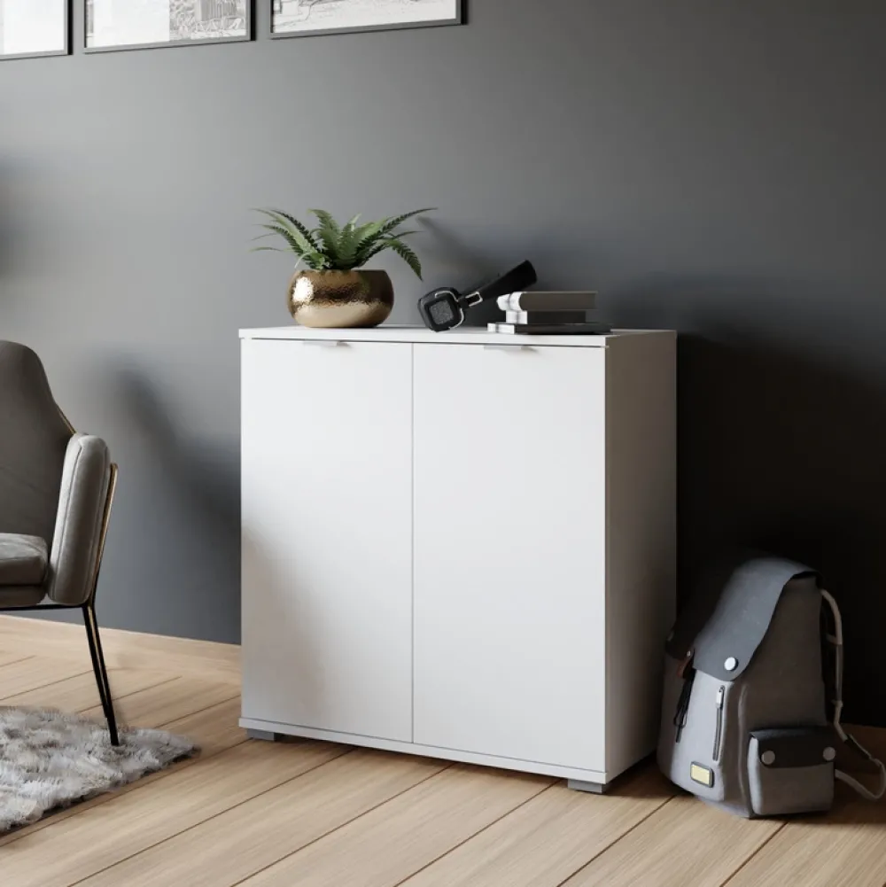 Komoda do pokoju ELARO 71 cm to zgrabny mebel, który idealnie sprawdzi się w salonie, sypialni lub przedpokoju. Dzięki uniwersalnemu białemu dekorze oraz kompaktowym wymiarom, komoda doskonale wpisuje się w potrzeby nowoczesnych wnętrz, oferując jednocześnie praktyczne miejsce do przechowywania codziennych drobiazgów.