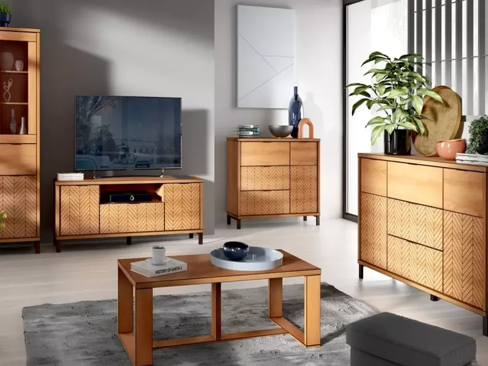 - Nasza duża komoda FONETTI w kolorze dębu karmel stanowi doskonały dodatek do Twojego salonu. Unikalny, frezowany wzór czarnej jodełki na frontach podkreśla jej charakter. Zmień swój salon w miejsce pełne stylu i elegancji.