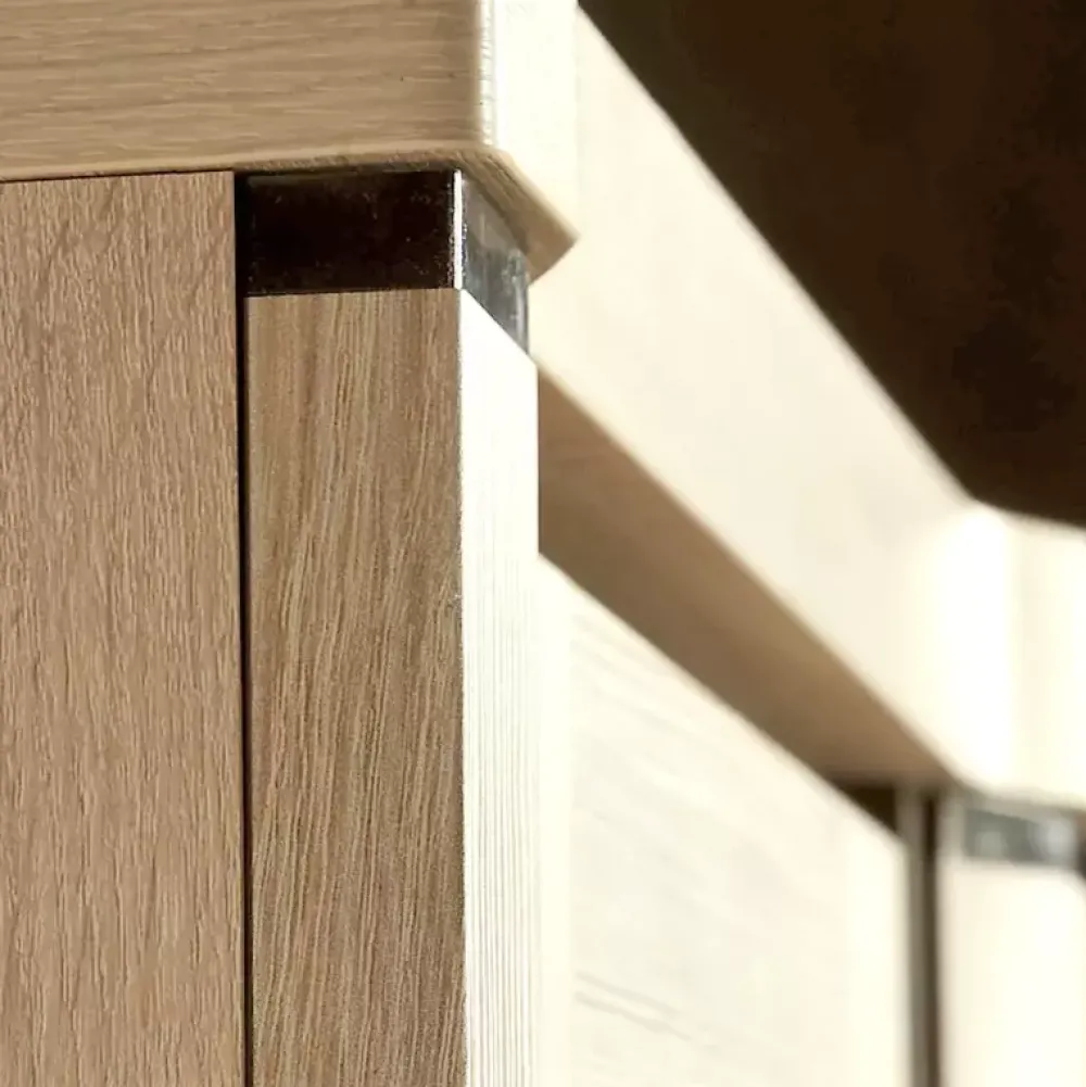 - Obrzeża komody zabezpieczono przed uszkodzeniami okleiną ABS.
