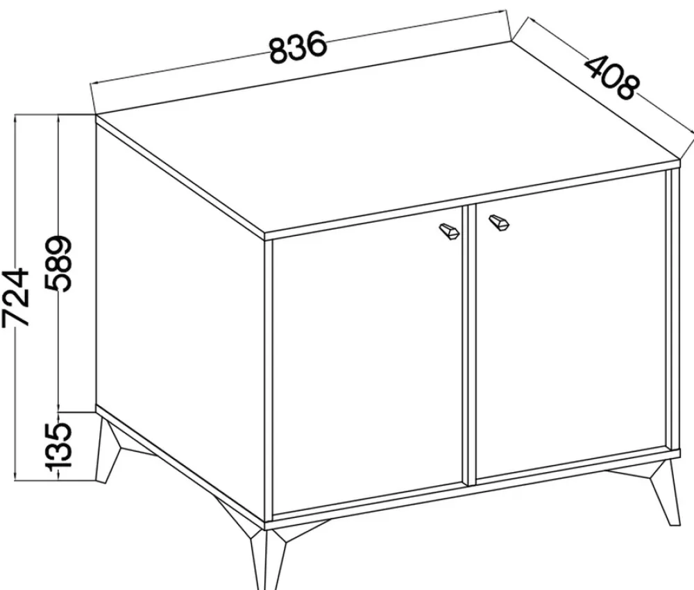 - Komoda do salonu 83,5 cm TOKEN posiada dwoje drzwi, za każdymi z nich znajduje się jedna półka. Nóżki oraz uchwyty wykonano z metalu. Komoda posiada obrzeża estetycznie wykończone okleiną ABS. Dostępna w paru kolorach.