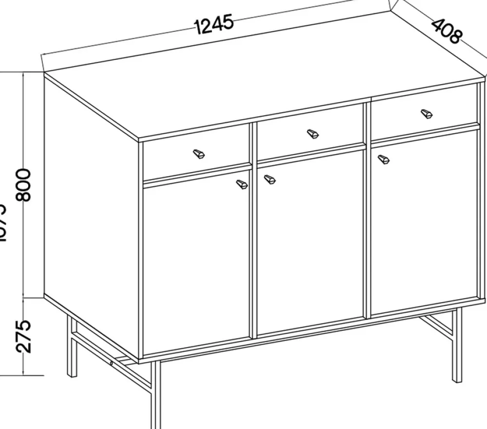 Komoda stoi na solidnych metalowych nóżkach o wysokości 27,5 cm, które nadają jej nowoczesny, lekki wygląd. Metalowy stelaż nie tylko dodaje meblowi stabilności, ale również podkreśla jego industrialny charakter. Dzięki wysokim nóżkom, komoda jest łatwa do utrzymania w czystości – bez problemu odkurzysz czy umyjesz podłogę pod nią.