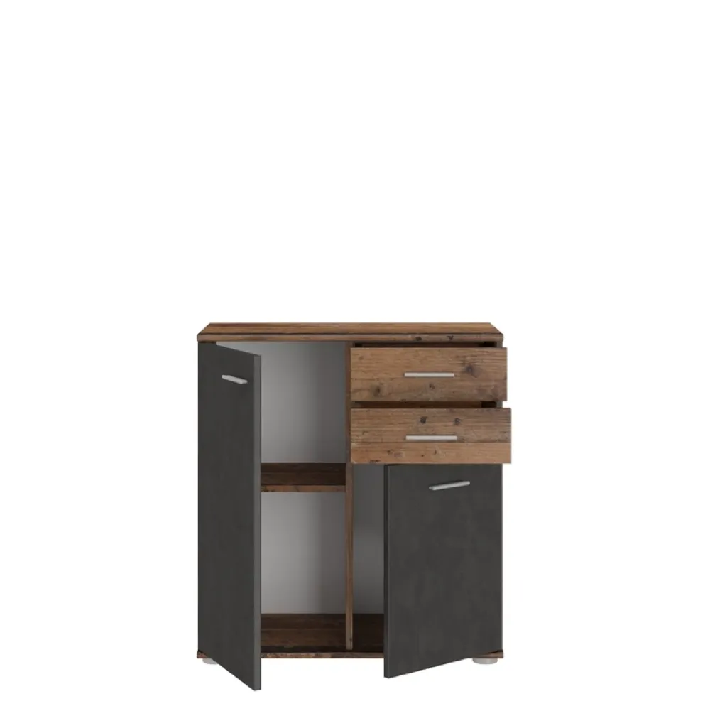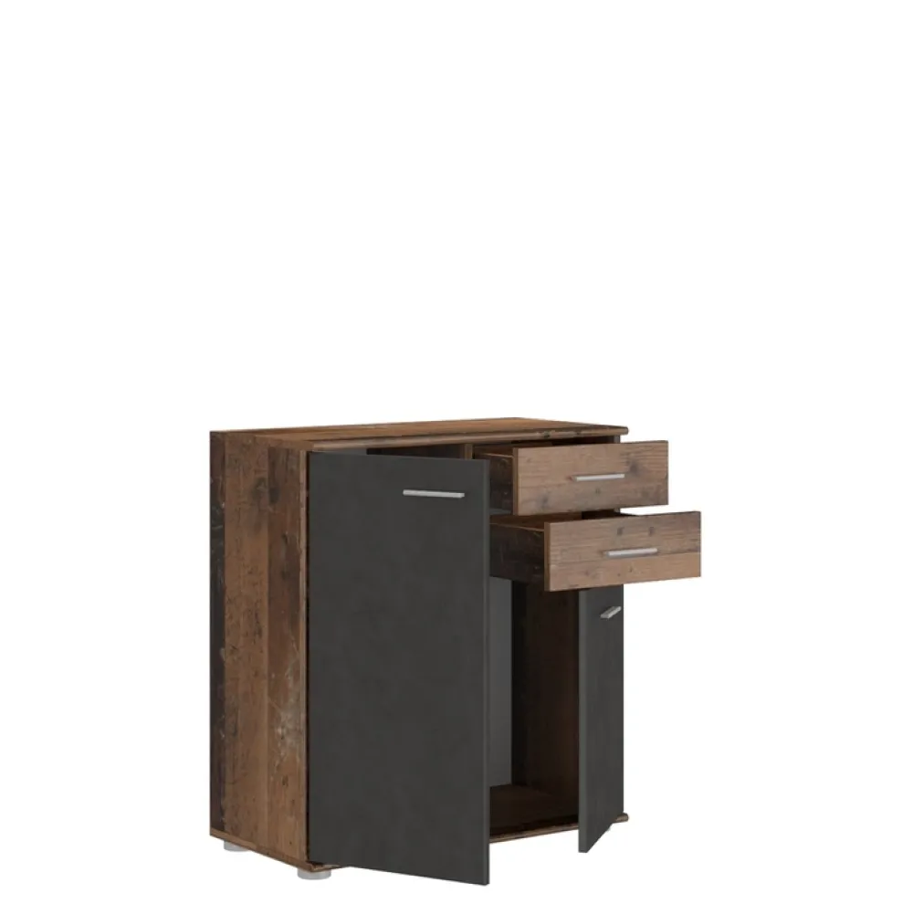- Zapraszamy do świata klasycznego designu z naszą komodą MANAUS o szerokości 71 cm. Wykończona w unikalnych odcieniach old style i matera, z dwoma drzwiami i dwiema szufladami, łączy praktyczność z wyrafinowanym stylem.