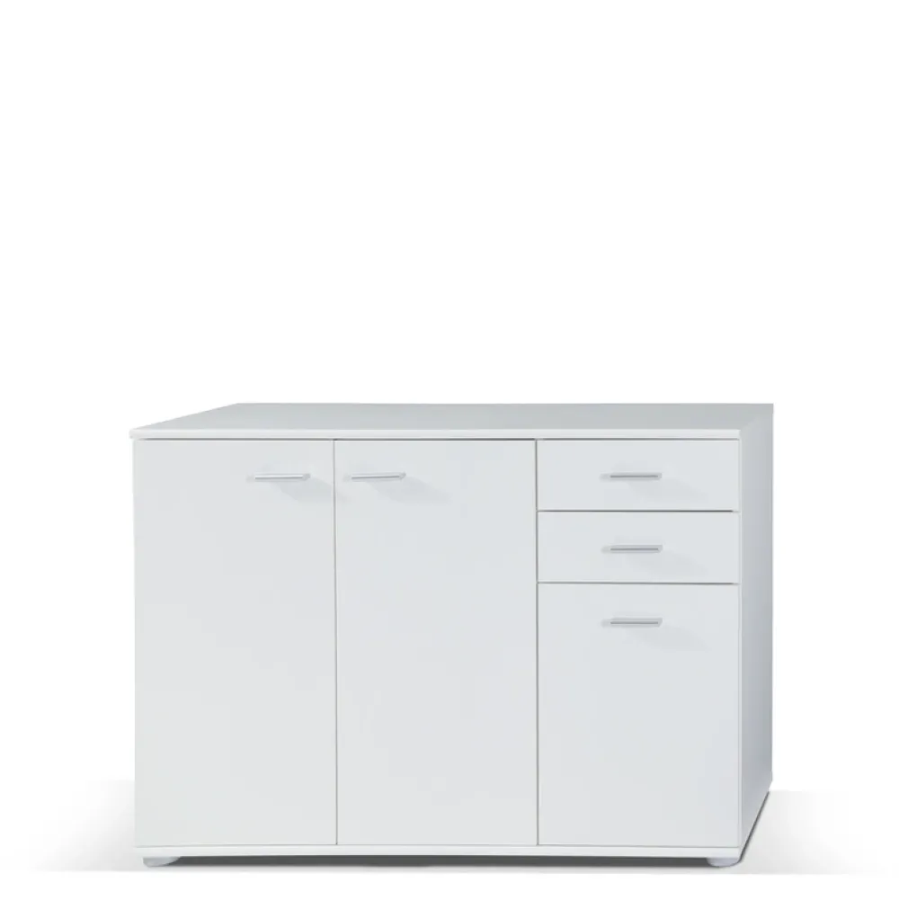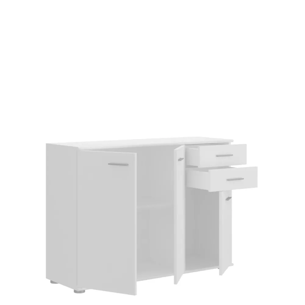 - Podkreśl swoje wnętrze elegancką, białą komodą MANAUS w stylu klasycznym. Posiada trzy drzwi i dwie szuflady, oferując praktyczną przestrzeń do przechowywania. To nie tylko mebel, ale deklaracja stylu – idealne połączenie estetyki i funkcjonalności