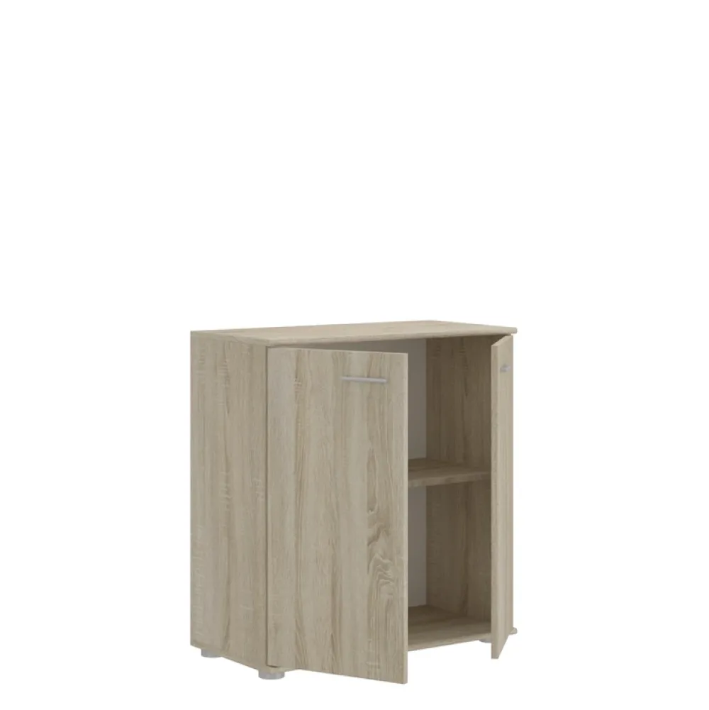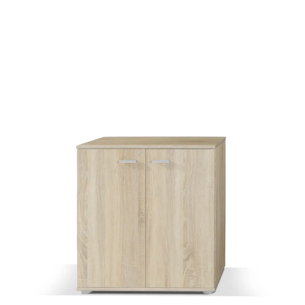 Ta klasyczna komoda mierzy 71 cm szerokości, co sprawia, że doskonale wpasuje się w każde miejsce – od przestronnych salonów, po małe sypialnie czy korytarze. Konstrukcja mebla została zaprojektowana tak, aby zoptymalizować przechowywanie i organizację Twoich rzeczy. Dwoje drzwi kryje praktyczna półka, dzieląca przestrzeń na dwie równe części. Dzięki temu zarówno duże przedmioty, jak i drobiazgi znajdą swoje miejsce, a Ty zyskasz łatwy dostęp do nich w każdym momencie.