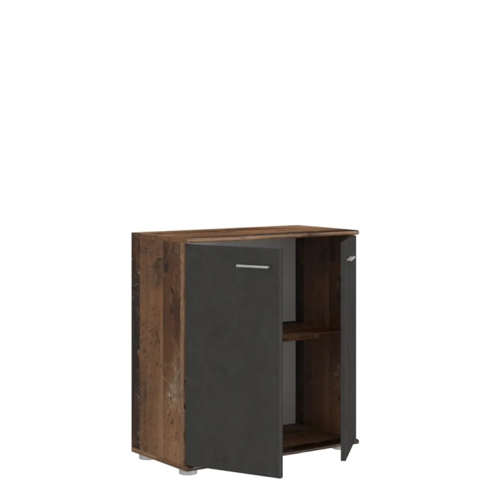 Ta klasyczna komoda mierzy 71 cm szerokości, co sprawia, że doskonale wpasuje się w każde miejsce – od przestronnych salonów, po małe sypialnie czy korytarze. Konstrukcja mebla została zaprojektowana tak, aby zoptymalizować przechowywanie i organizację Twoich rzeczy. Dwoje drzwi kryje praktyczna półka, dzieląca przestrzeń na dwie równe części. Dzięki temu zarówno duże przedmioty, jak i drobiazgi znajdą swoje miejsce, a Ty zyskasz łatwy dostęp do nich w każdym momencie.