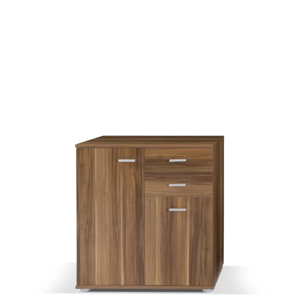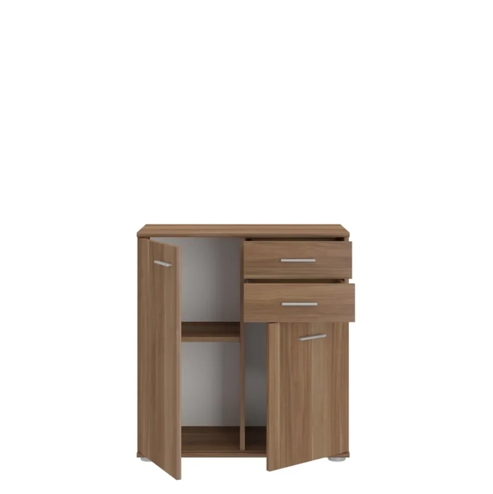 Ta klasyczna komoda, szeroka na 71 cm, jest wyjątkowo funkcjonalna. Duże drzwi po lewej stronie kryją wewnątrz półkę, która dzieli przestrzeń na pół. To ułatwia organizację i przechowywanie wszelkiego rodzaju przedmiotów, od ubrań i pościeli po dokumenty i sprzęt multimedialny.