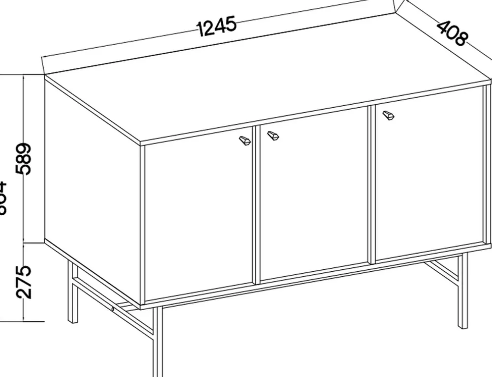 Dzięki uniwersalnemu designowi, komoda o szerokości 124,5 cm doskonale wpasuje się zarówno w nowoczesne, jak i klasyczne aranżacje wnętrz. Trzy drzwi zapewniają dużą przestrzeń do przechowywania, dzięki czemu z łatwością uporządkujesz swoje rzeczy. Metalowe nóżki i uchwyty nadają meblowi nowoczesny wygląd, a wykończenie obrzeży okleiną ABS gwarantuje jego trwałość.