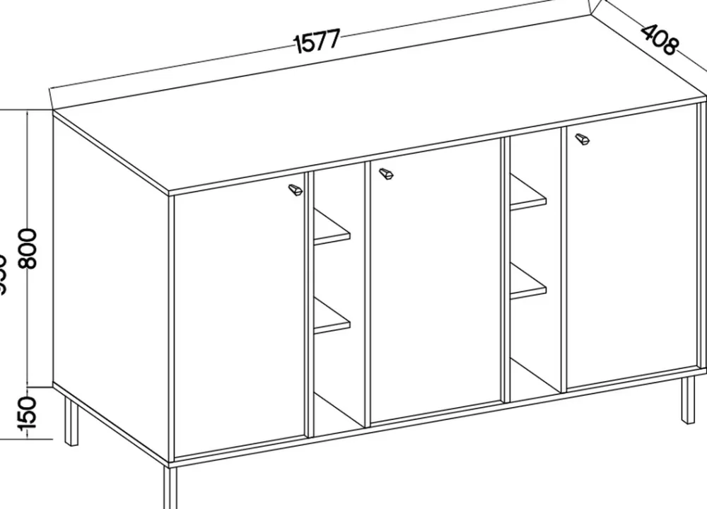 Nasza komoda do salonu została zaprojektowana z myślą o nowoczesnym wystroju wnętrz. Wyposażona w trzy drzwi, za każdymi z nich znajduje się pojemna półka, która umożliwia wygodne przechowywanie różnych przedmiotów. Dodatkowo komoda posiada dwie otwarte przegrody, każda z nich wyposażona w dwie półki, co sprawia, że jest idealna do eksponowania książek, dekoracji czy sprzętu RTV.