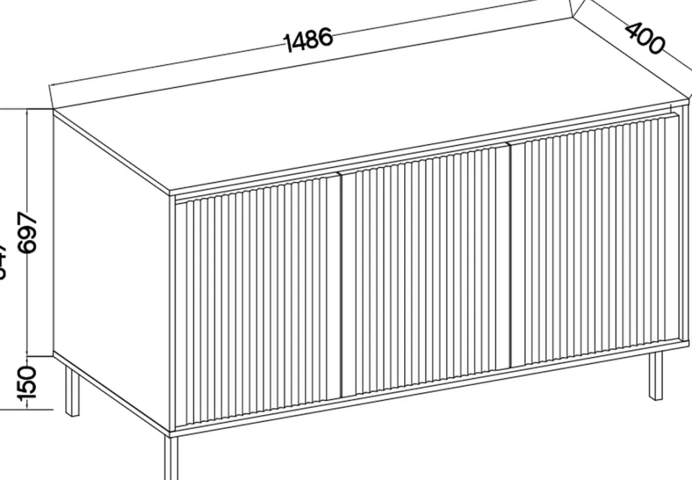 Trzy drzwi wykonane z płyty MDF z frezowanym wykończeniem dodają komodzie wyrafinowanego i ponadczasowego charakteru. Mechanizm cichego domyku zapewnia płynne i bezgłośne zamykanie, co podnosi komfort codziennego użytkowania.