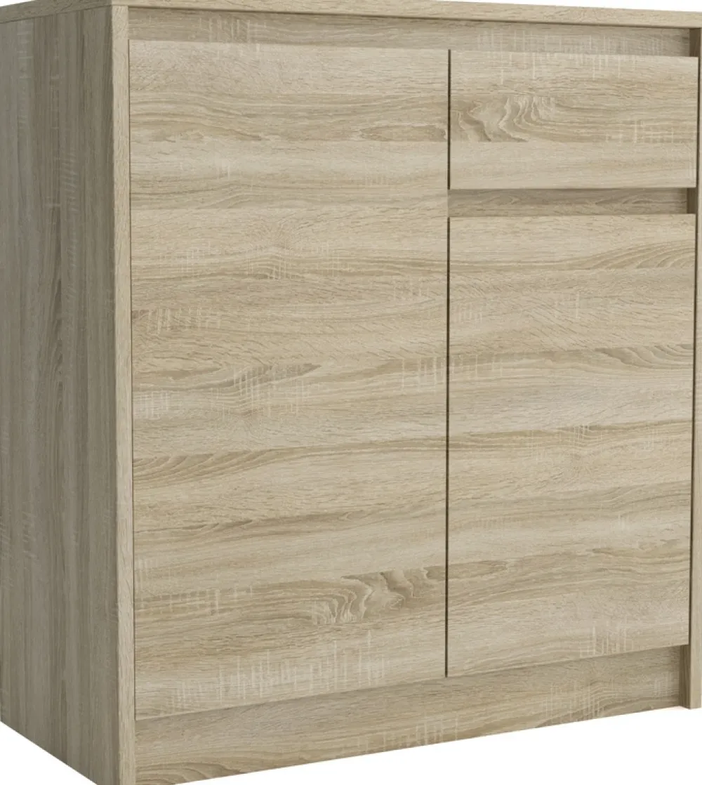- Mała komoda ARTEGO mimo niewielkich rozmiarów zaskoczy Cię funkcjonalnością. Nowoczesna komoda posiada dwoje drzwi, za którymi kryją się półki. Wyposażona została również w pojemną szufladę, o której płynne działanie dbają prowadnice rolkowe.