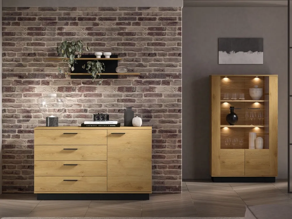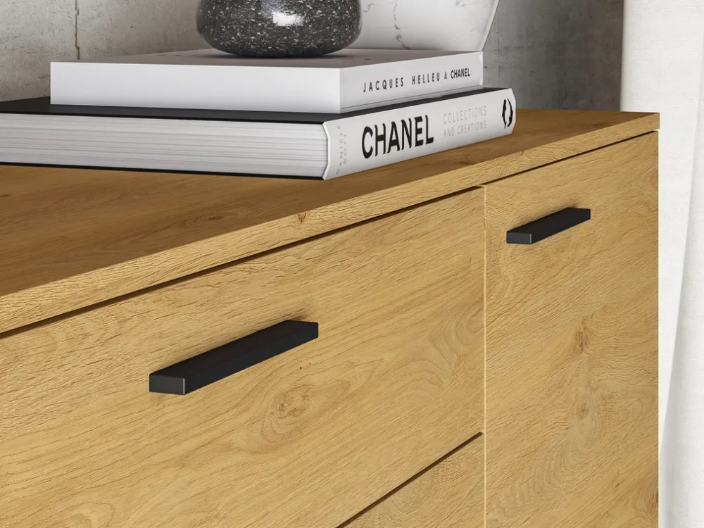 Kompaktowa komoda do salonu MONELLI – elegancja i funkcjonalność w dębowym wydaniu