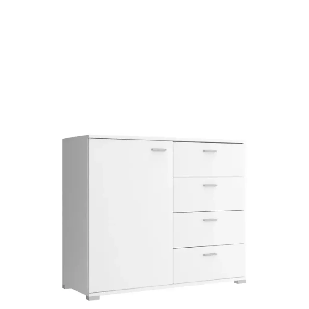 - Komoda wyposażona w jedną półkę i cztery szuflady.