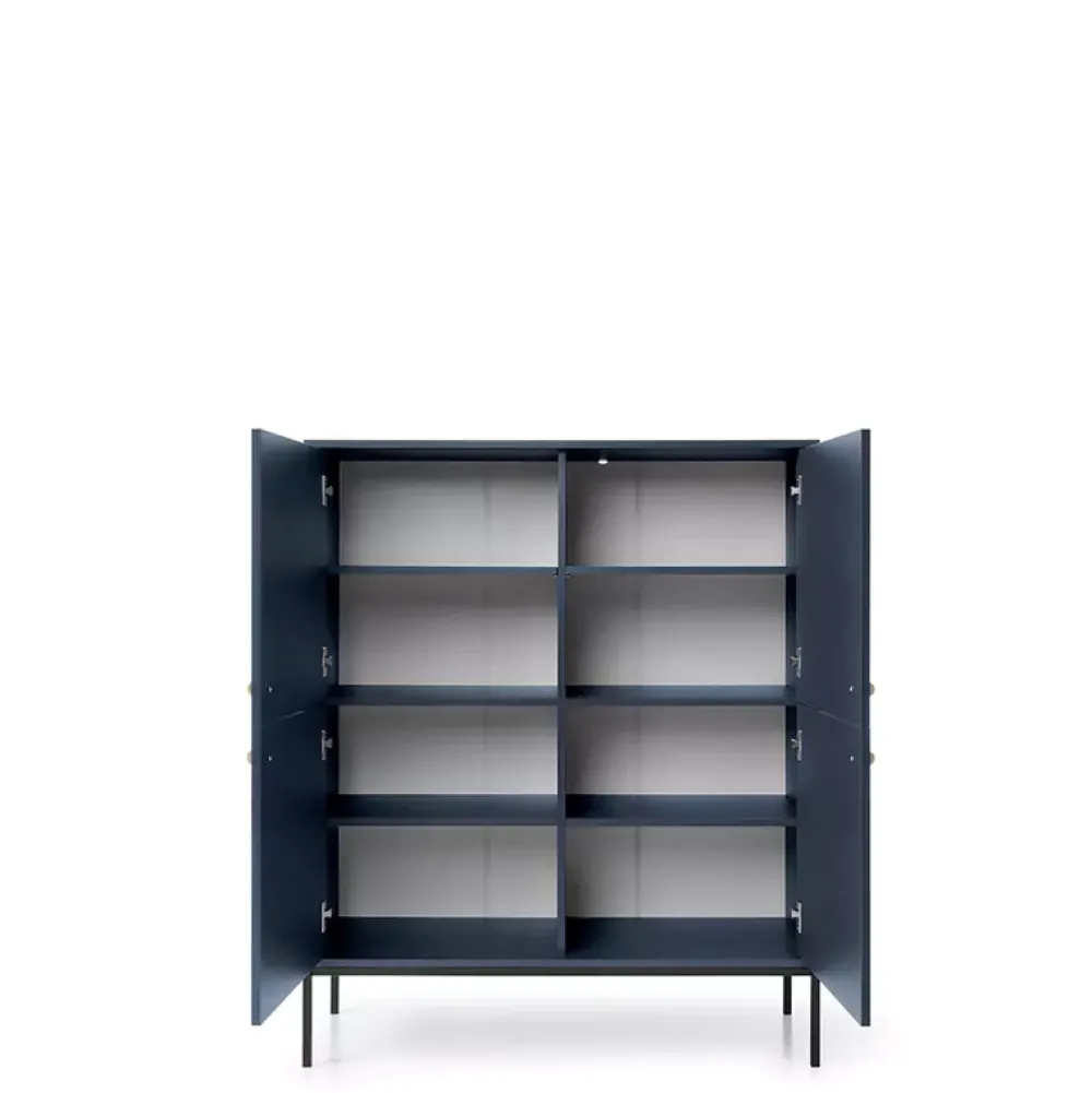 - Zanurz się w luksusie z naszą nowoczesną, granatową komodą MONTI. Cztery drzwi, złote metalowe nogi – to elegancja, która przyciąga wzrok. Komoda, która definiuje styl Twojego salonu.
