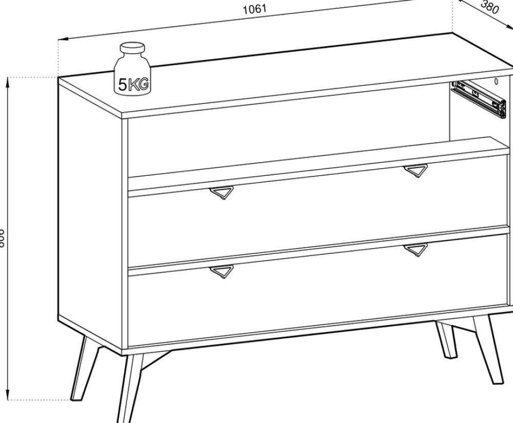 Złote uchwyty z metalu nie tylko dodają meblowi blasku, ale także są wytrzymałe i trwałe. Komoda została wyposażona w trzy przestronne szuflady, które poruszają się na prowadnicach kulkowych, gwarantując płynność i cichą pracę przy każdorazowym otwieraniu i zamykaniu.