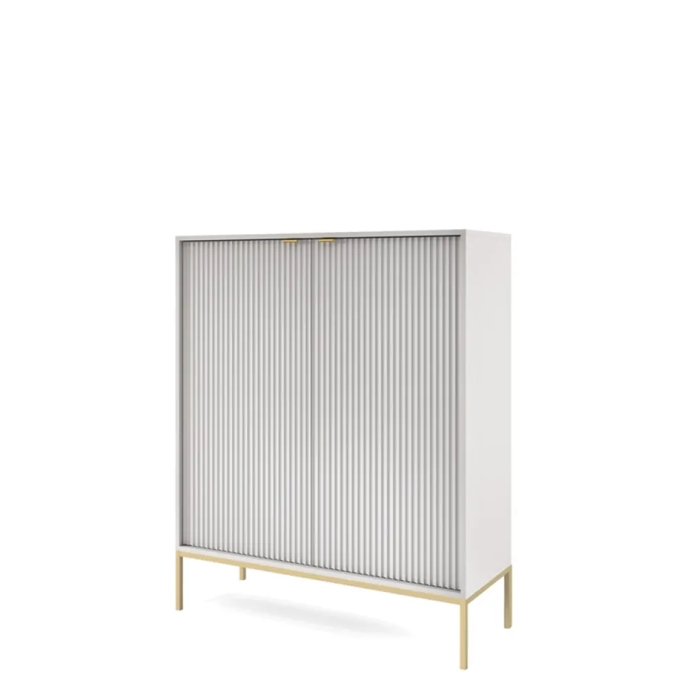 - Glamour w odcieniu szarości. Nasza komoda AVANTI z ryflowanymi frontami MDF i złotymi nogami tworzy elegancką atmosferę. Szarość spotyka złoto – idealne połączenie klasy, stylu i funkcjonalności w jednym meblu!