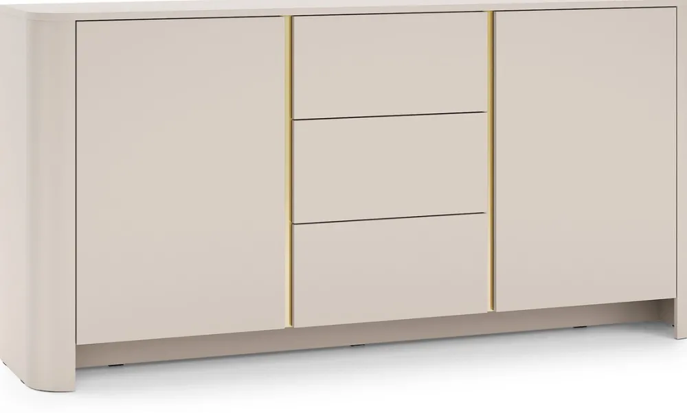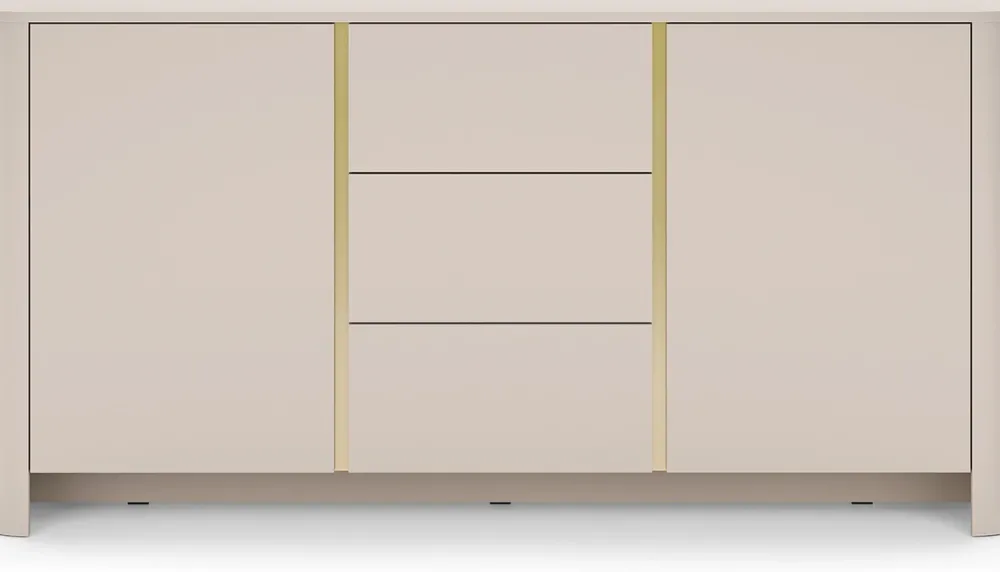 Nowoczesna komoda BELVI w kolorze kaszmir to propozycja dla osób, które cenią subtelne wzornictwo i przemyślane rozwiązania do przechowywania. Jej delikatny odcień kaszmiru doskonale wpisuje się w trendy współczesnego designu, a zestawienie zamykanych szafek z trzema pojemnymi szufladami pozwala utrzymać porządek w salonie, jadalni lub sypialni.
