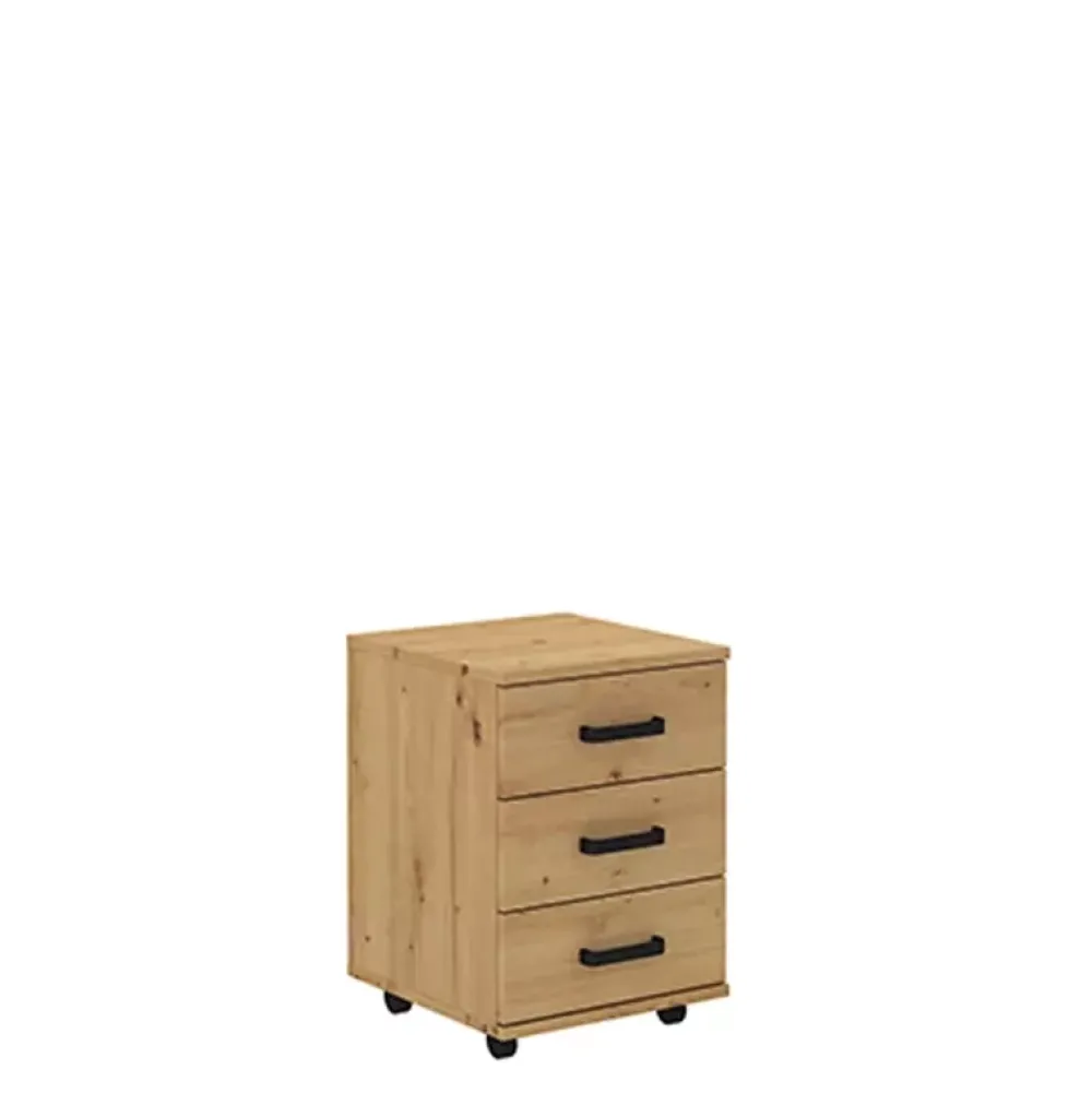 - Nowoczesny kontenerek pod biurko ma 40,2 cm szerokości i wyposażono go w trzy praktyczne szuflady pracujące na prowadnicach kulkowych.
