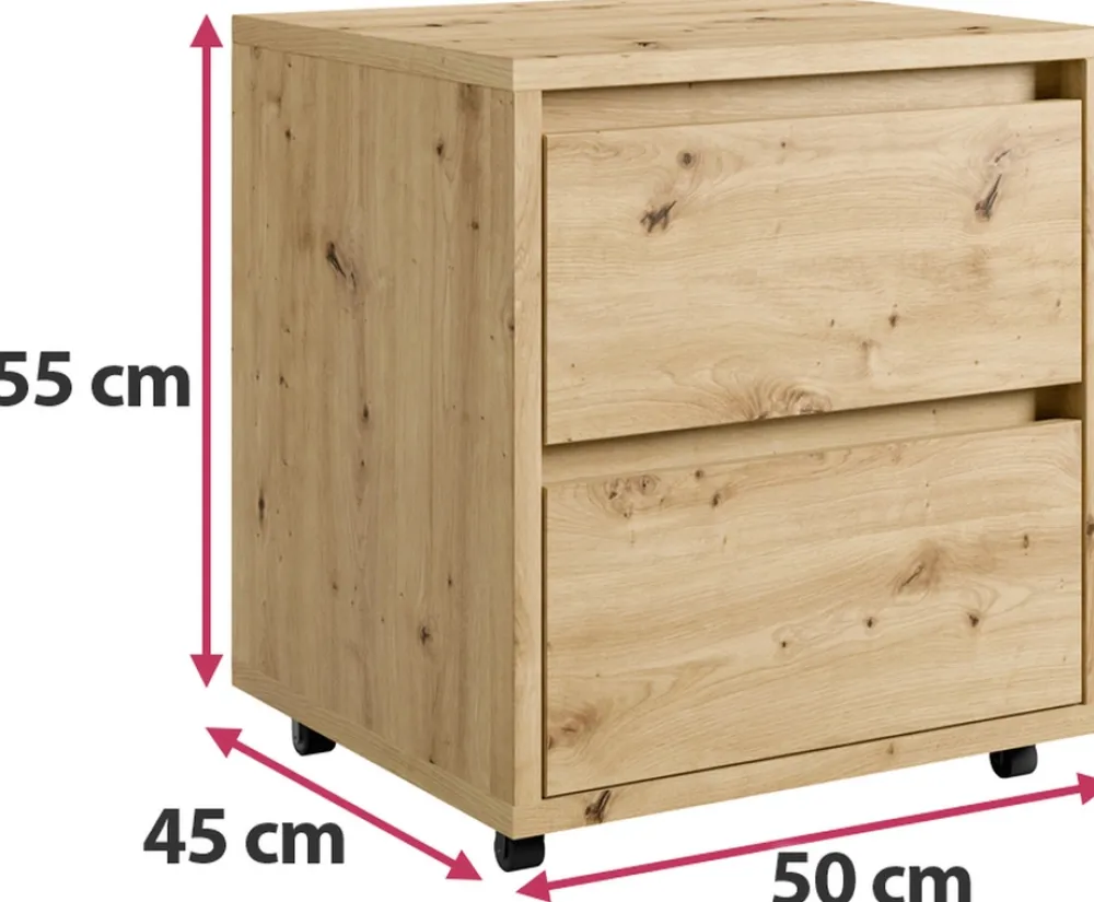 Kontenerek wyposażono w dwie szuflady osadzone na prowadnicach rolkowych, które zapewniają płynne i ciche otwieranie. Idealne rozwiązanie do przechowywania dokumentów, przyborów biurowych czy innych drobiazgów, które chcesz mieć zawsze pod ręką.