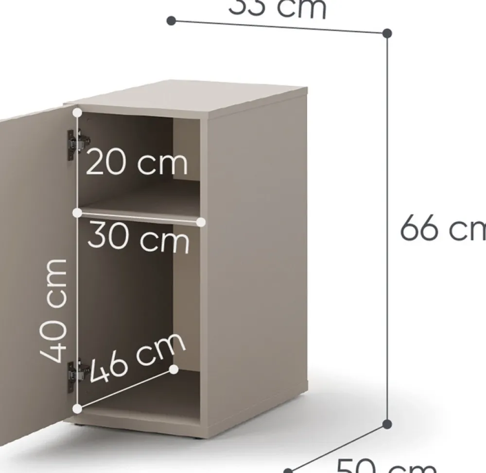 - Kontenerek biurowy WOOW 34 cm w kolorze clay grey to praktyczne uzupełnienie biurka w pokoju młodzieżowym. System push to open, dwie półki i kompaktowe wymiary sprawiają, że świetnie organizuje przestrzeń nawet w małych pomieszczeniach.