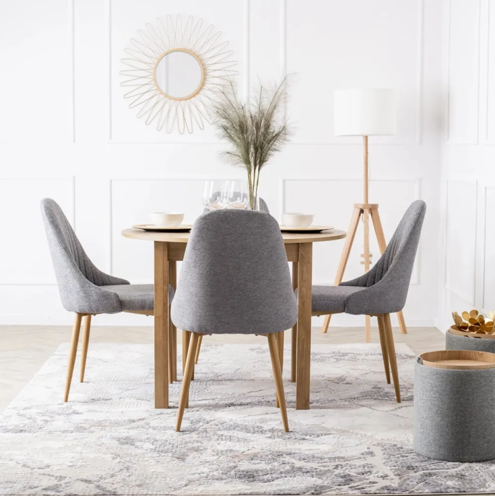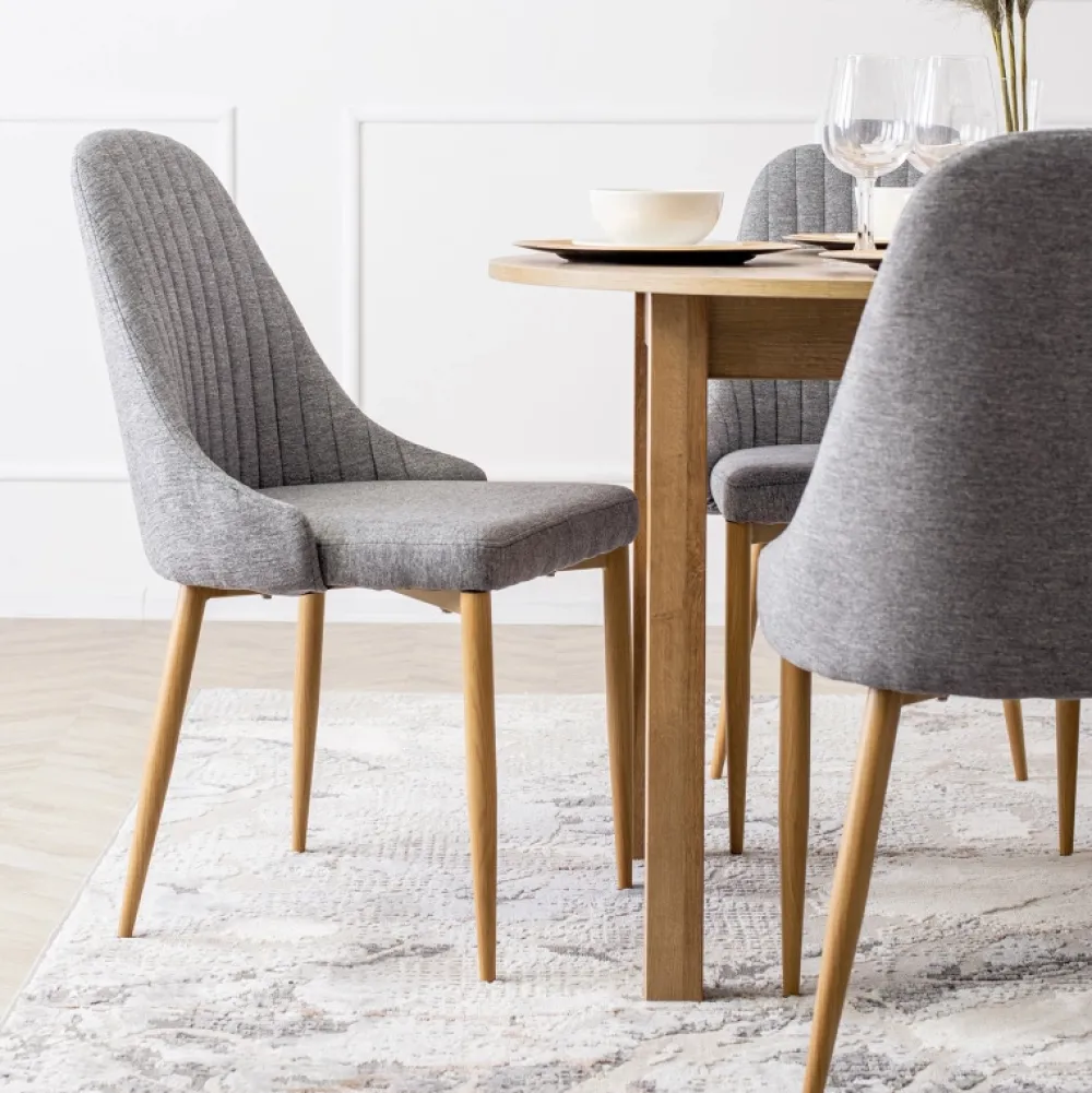 Krzesło tapicerowane TIRANO w kolorze szarym to doskonały wybór dla osób ceniących prostotę, komfort oraz uniwersalny styl. Doskonale odnajdzie się w nowoczesnej jadalni, klasycznym salonie czy pokoju dziennym. Subtelne przeszycia, smukła forma i trwałe materiały sprawiają, że TIRANO łączy funkcjonalność z estetyką.