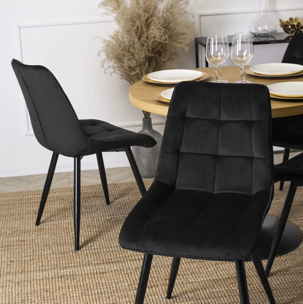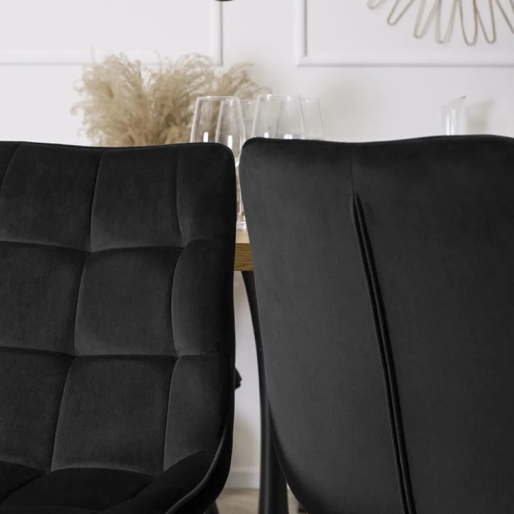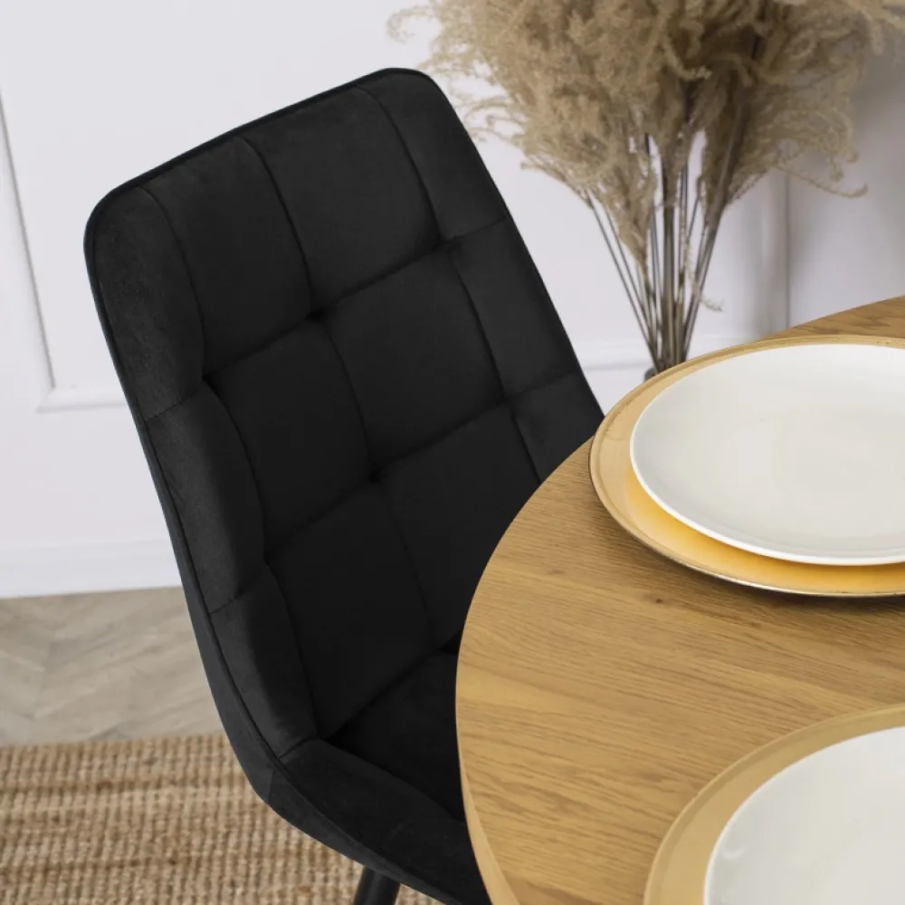 - Tapicerowane krzesło welurowe – miękka, przyjemna w dotyku tkanina w eleganckim czarnym kolorze