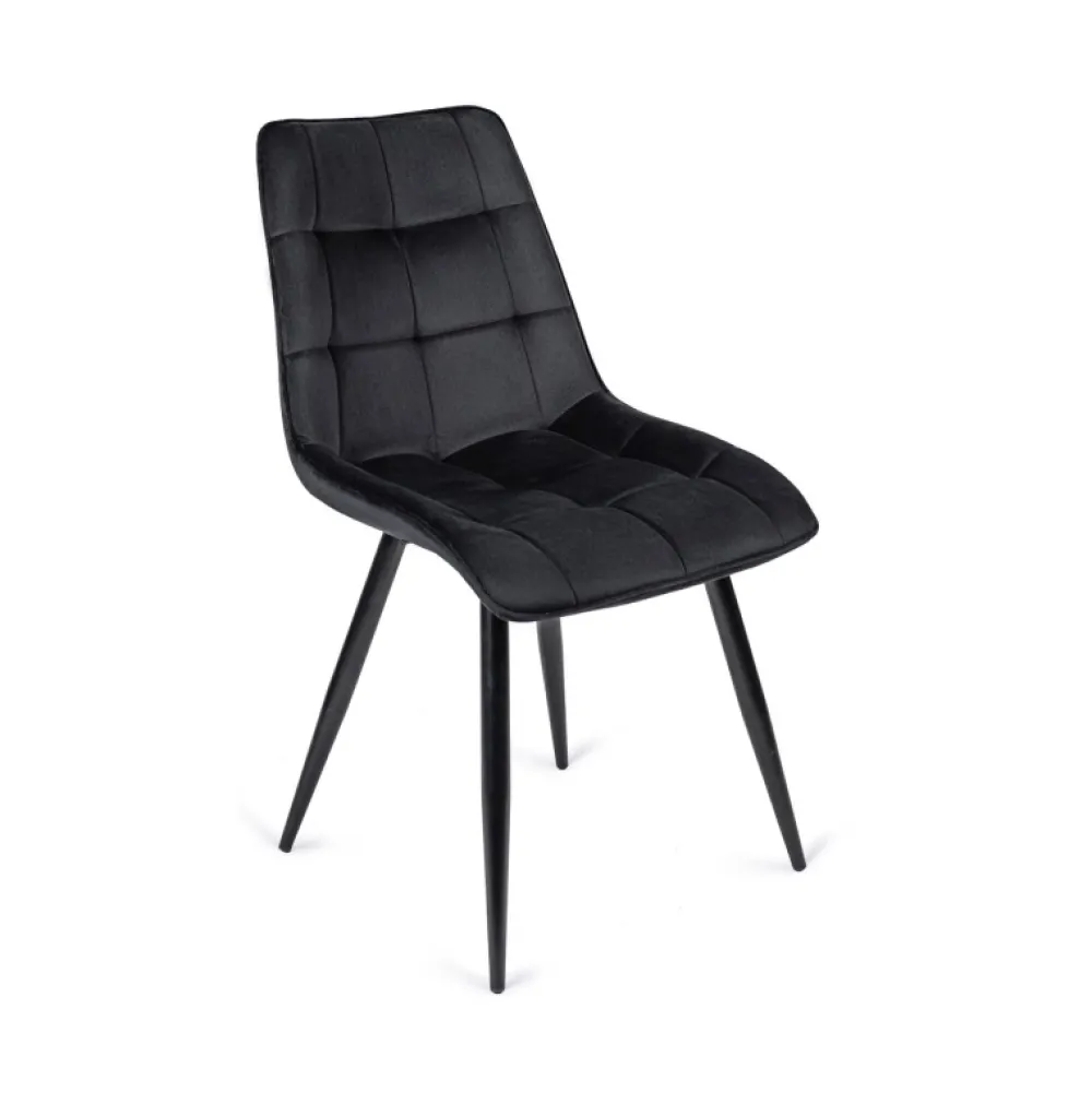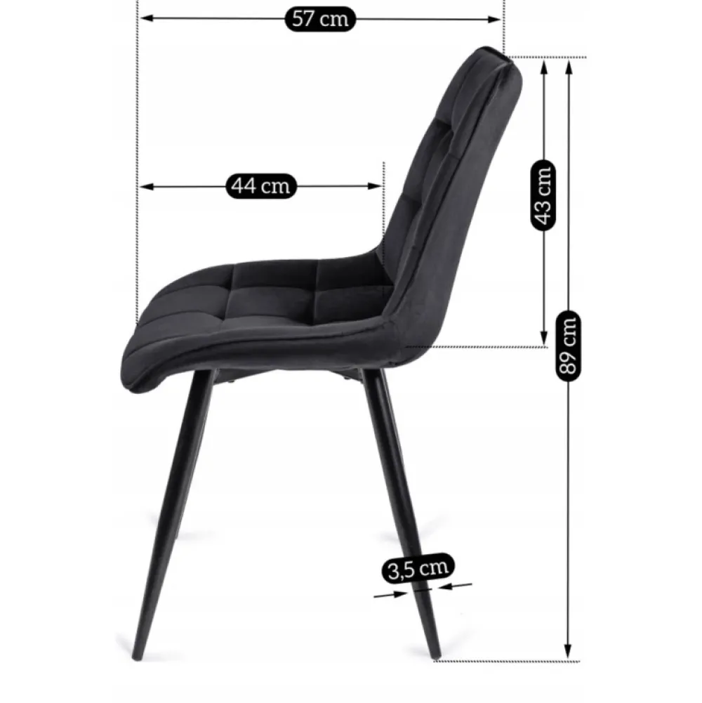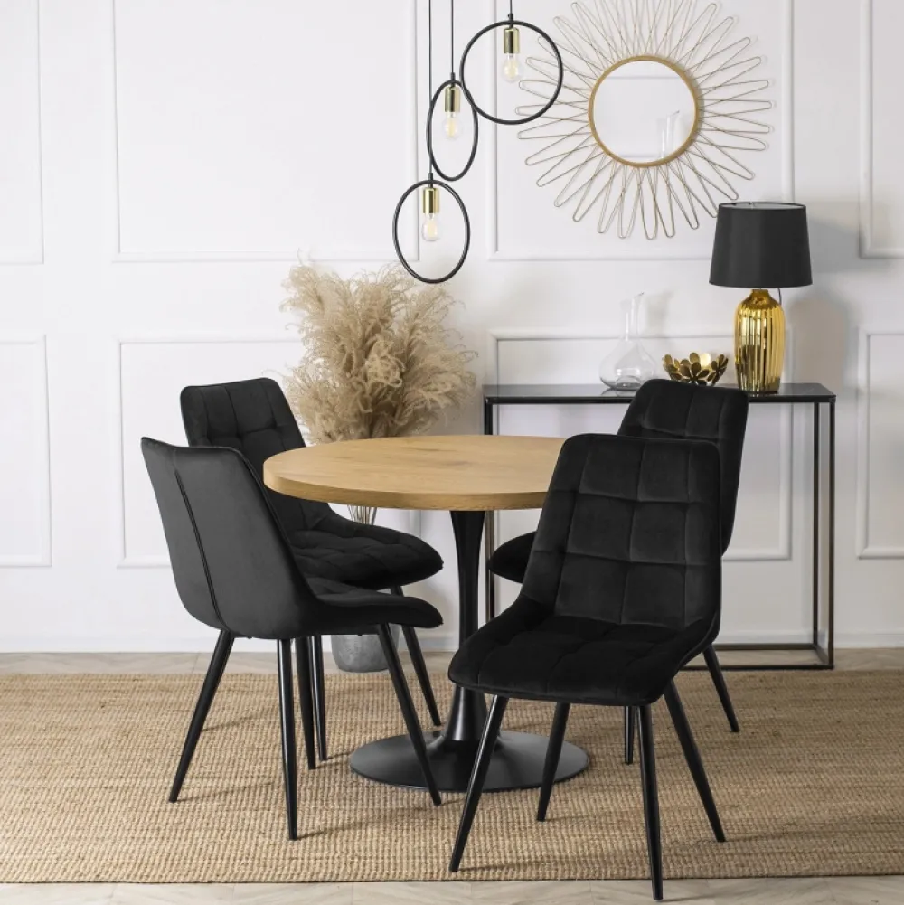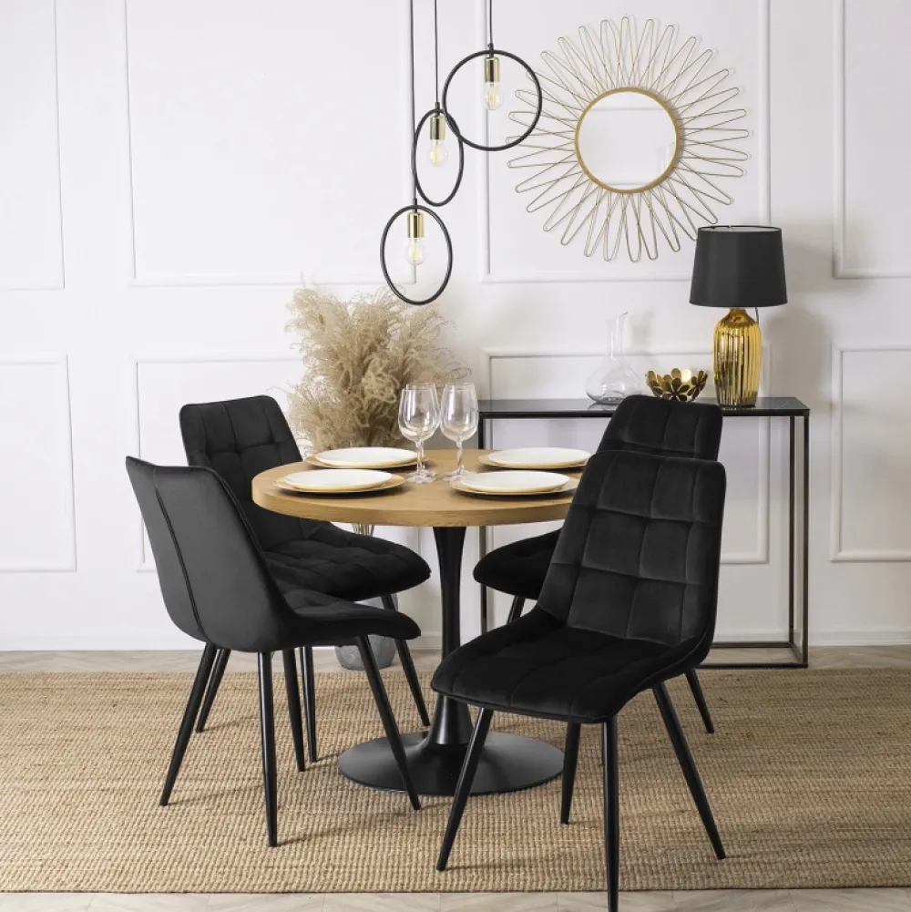 - Tapicerowane krzesło welurowe – miękka, przyjemna w dotyku tkanina w eleganckim czarnym kolorze
