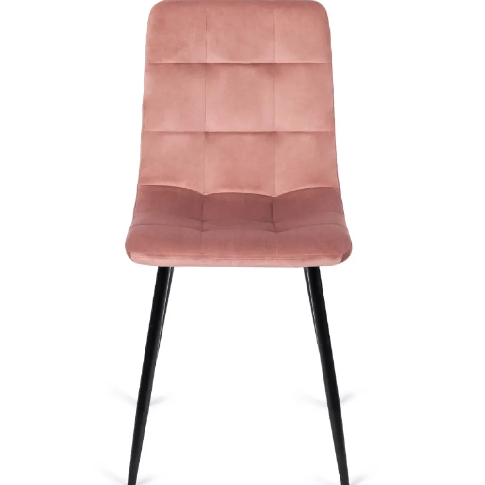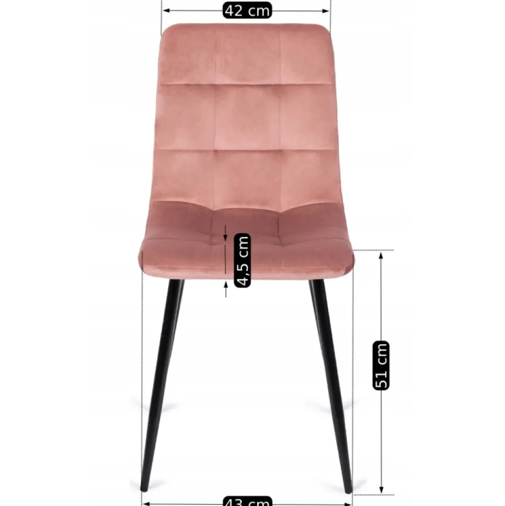 - Krzesło tapicerowane PAREO w różowej tapicerce z weluru to elegancka propozycja do wnętrz w stylu glamour i minimalistycznym. Dekoracyjne pikowania, metalowa konstrukcja i piankowe siedzisko, zapewnia komfort. Wymiary: 90,5 cm wys. x 43 cm szer.