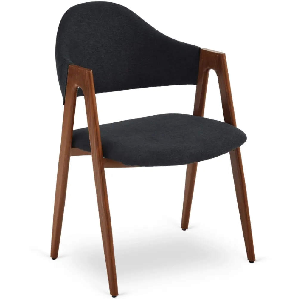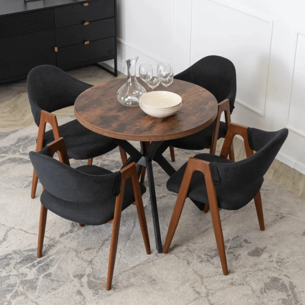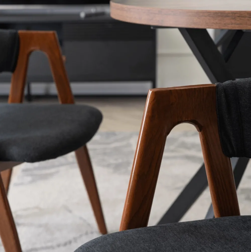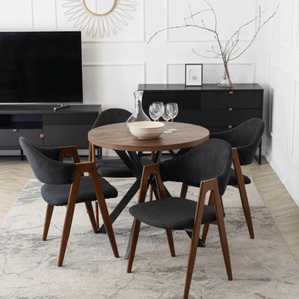 Krzesło tapicerowane RUVI w eleganckim zestawieniu czerni i orzecha to połączenie ponadczasowego designu z komfortem codziennego użytkowania. Uniwersalna forma, ergonomiczne oparcie i solidna konstrukcja sprawiają, że model RUVI idealnie sprawdzi się zarówno w jadalni, domowym biurze, jak i nowoczesnej sypialni.