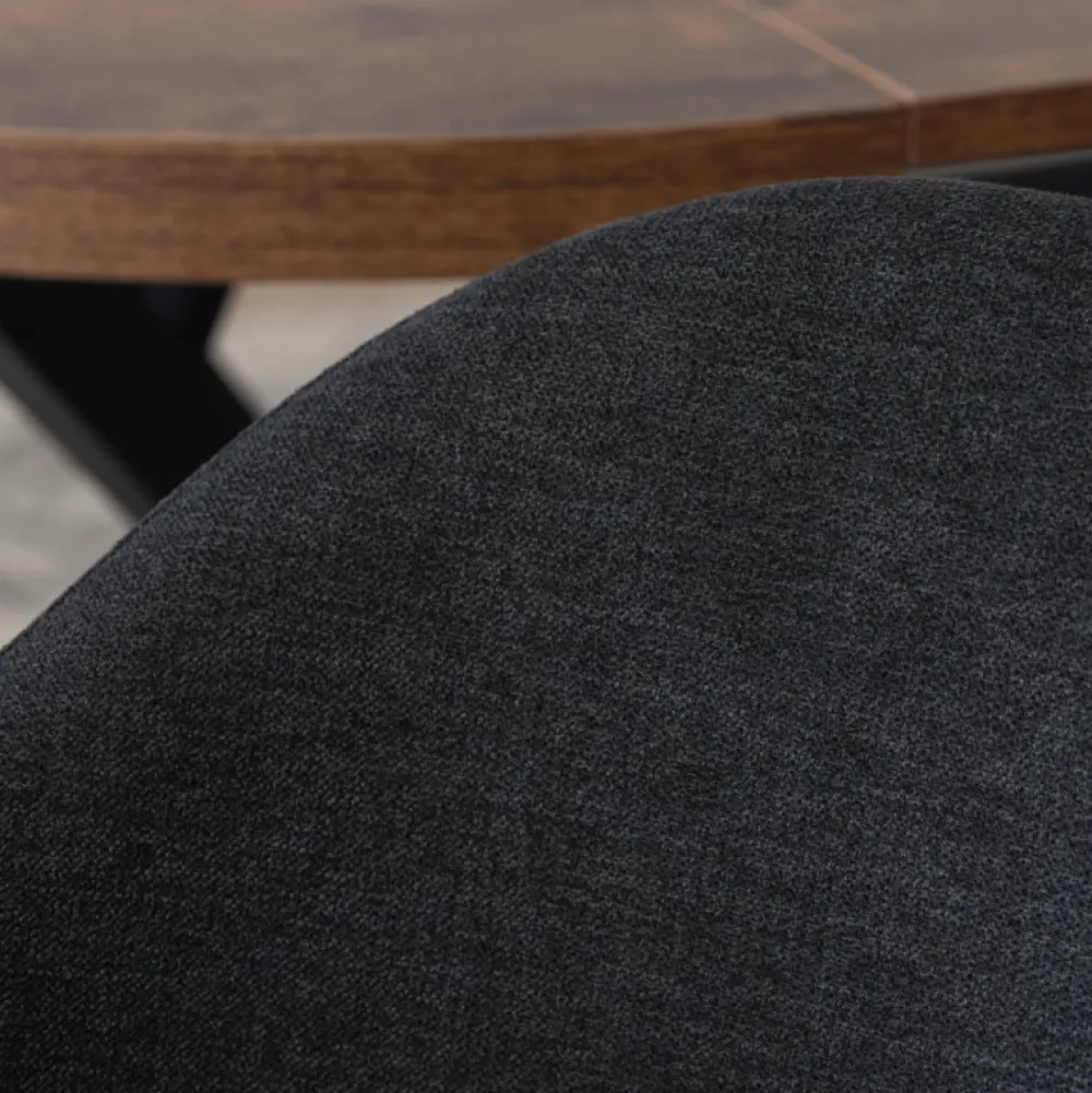 Model RUVI to krzesło, które doskonale wpisuje się w stylistykę nowoczesnych, klasycznych oraz loftowych wnętrz. Kolorystyczne połączenie czarnej tkaniny i ciepłego odcienia orzecha tworzy harmonijną, ponadczasową kompozycję. To wybór dla tych, którzy cenią estetykę i solidność.