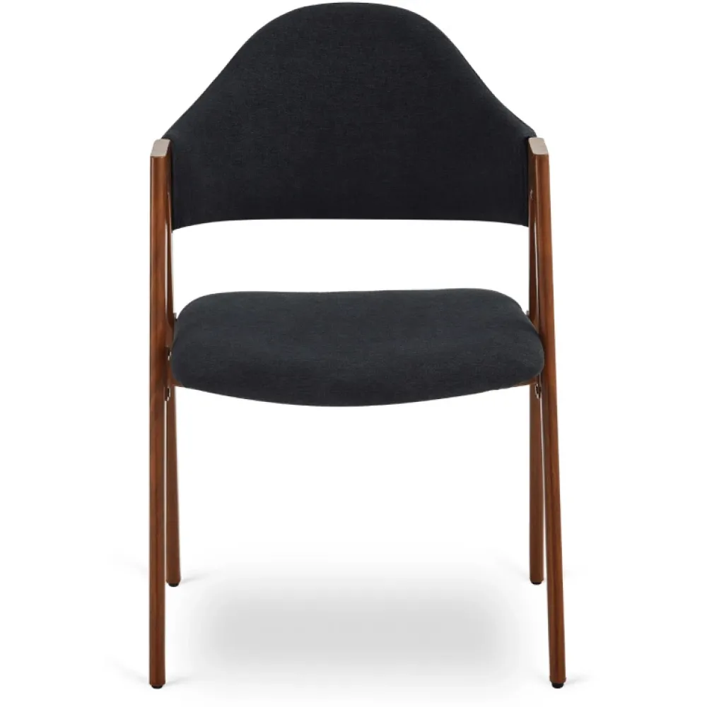- Krzesło RUVI w kolorze czarny/orzech to połączenie nowoczesnego designu z wygodą. Czarna tkanina jest łatwa do utrzymania w czystości, a metalowa podstawa w kolorze orzecha nadaje całości lekkości. Ergonomiczne oparcie i podłokietniki zapewniają wygodę.