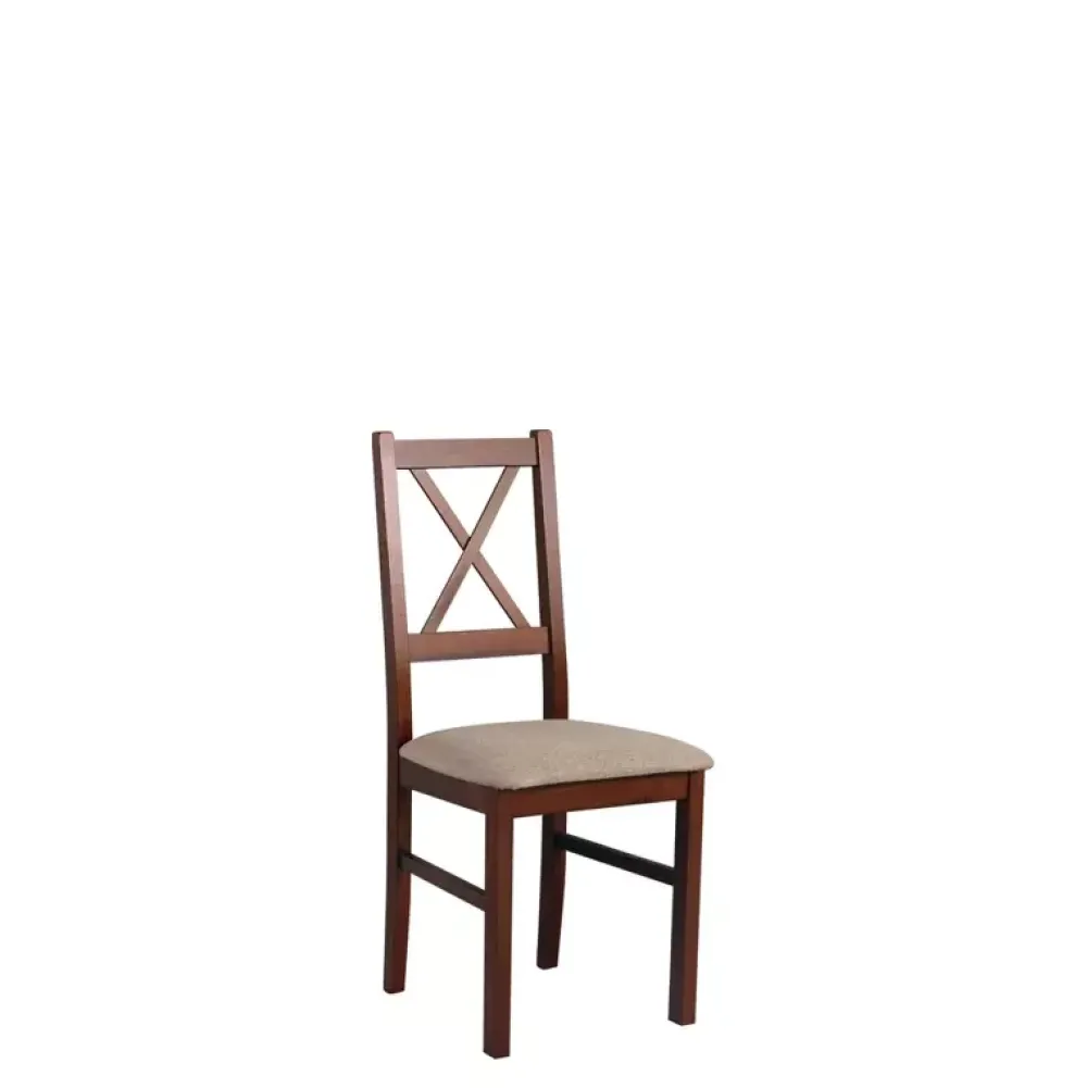 Drewniane krzesło do jadalni z kolekcji NESTO krzesło wykonane w klasycznym stylu z bardzo eleganckim wybarwieniem drewna w formie orzechu, zostało wyposażone w tapicerowane siedzisko, dzięki czemu spędzisz wygodnie czas przy stole z najbliższymi. Krzesło zostało wykonane z wysokiej jakości drewna bukowego, gwarantujących długotrwały okres eksploatacji. W związku, z wykorzystaniem naturalnych materiałów do produkcji, występują minimalne różnice pomiędzy poszczególnymi meblami takie jak usłojenie czy różnice odcieni drewna, które potwierdzają naturalne pochodzenie materiału.