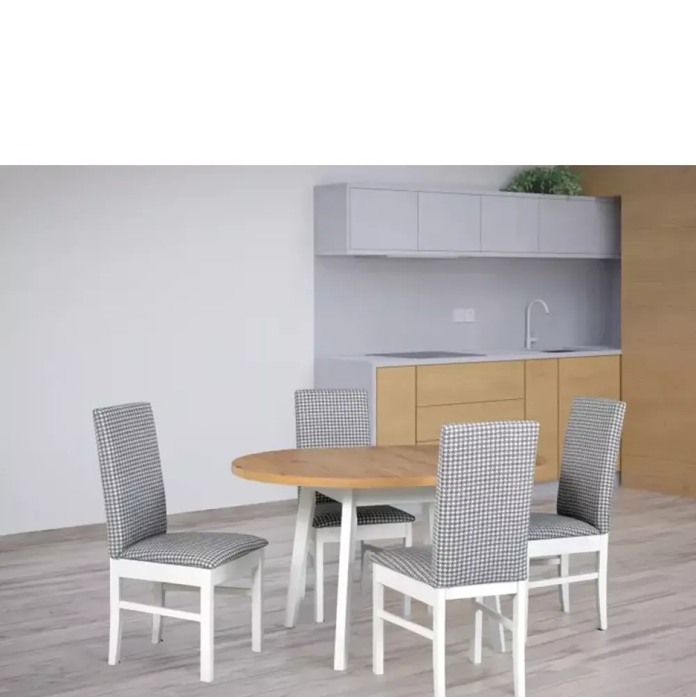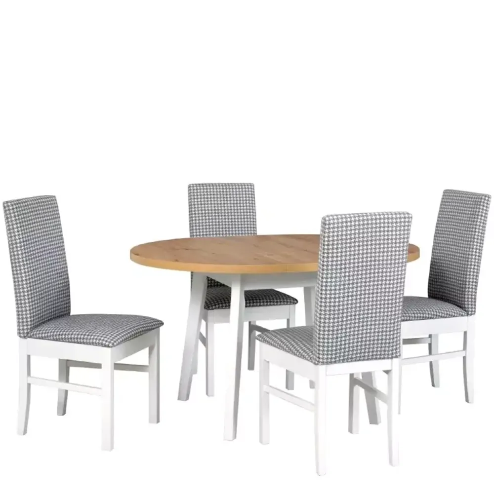 - Blat o okrągłym kształcie, zapewniający odpowiednią ilość miejsca dla czterech osób.