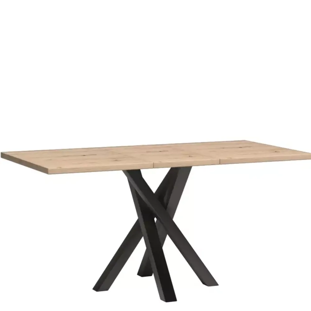 Stół CALIS jest propozycją dla osób poszukujących niekonwencjonalnych rozwiązań na zagospodarowanie swojej jadalni. Stół posiada nogi wykonane z malowanego proszkowo metalu w kolorze czarnym, które poprzez swój kształt doskonale zdobią współczesne aranżacje jadalni. Dodatkowo stół został wyposażony w funkcję rozkładania, która pozwala w prosty sposób zwiększyć długość blatu ze standardowych 120 cm do 160 cm.
