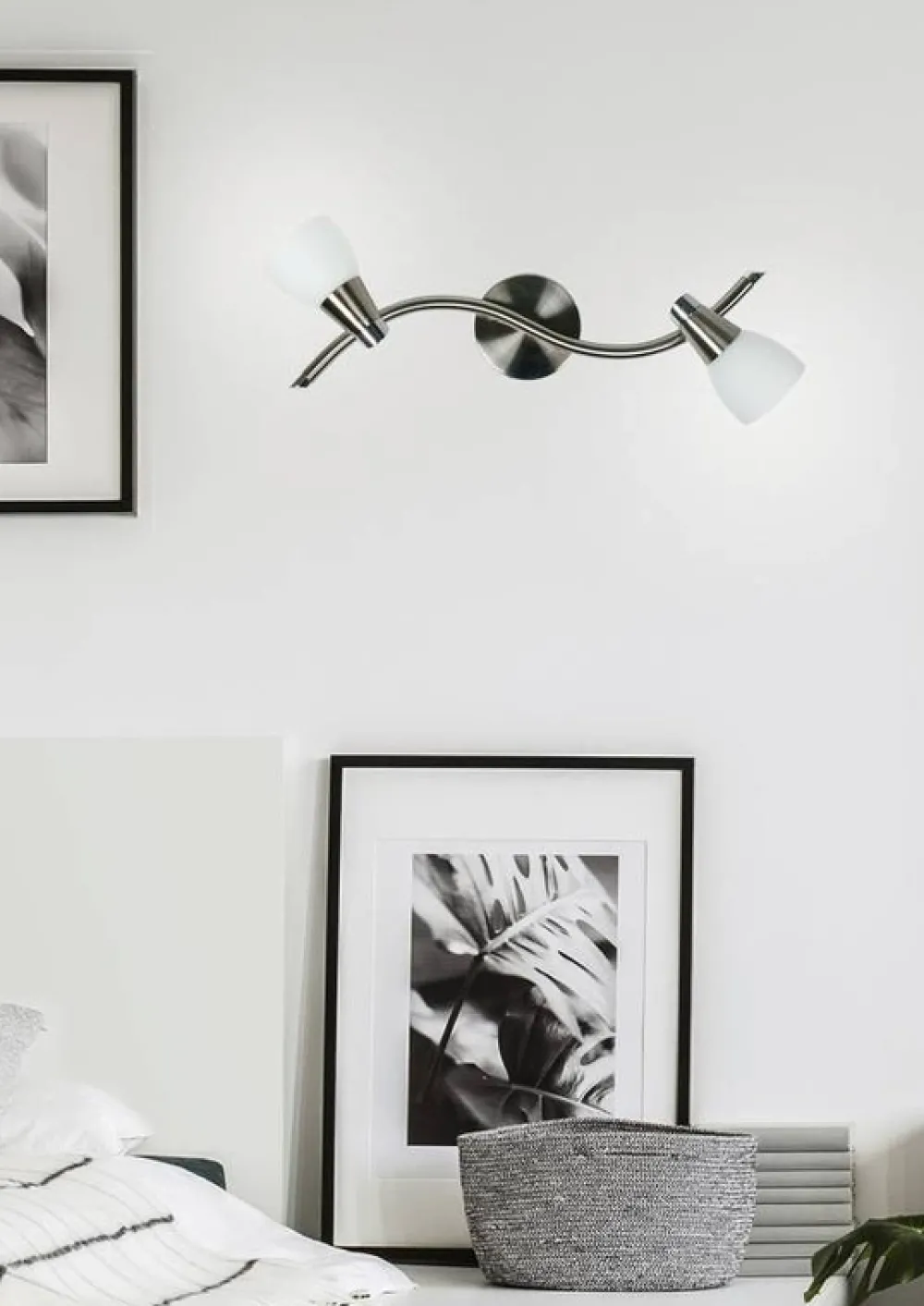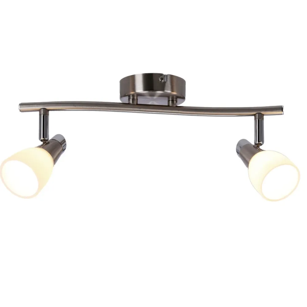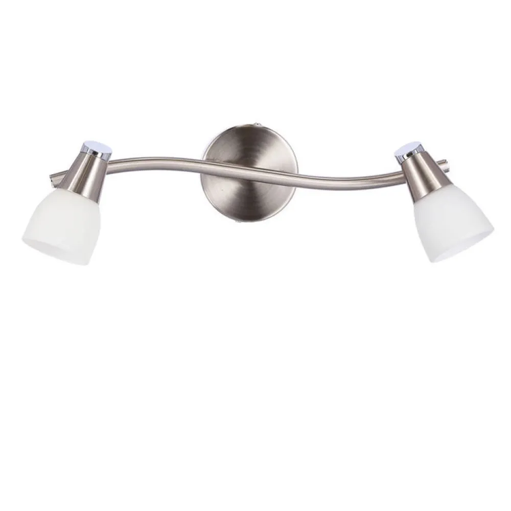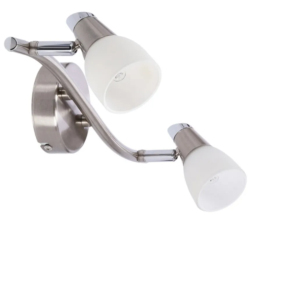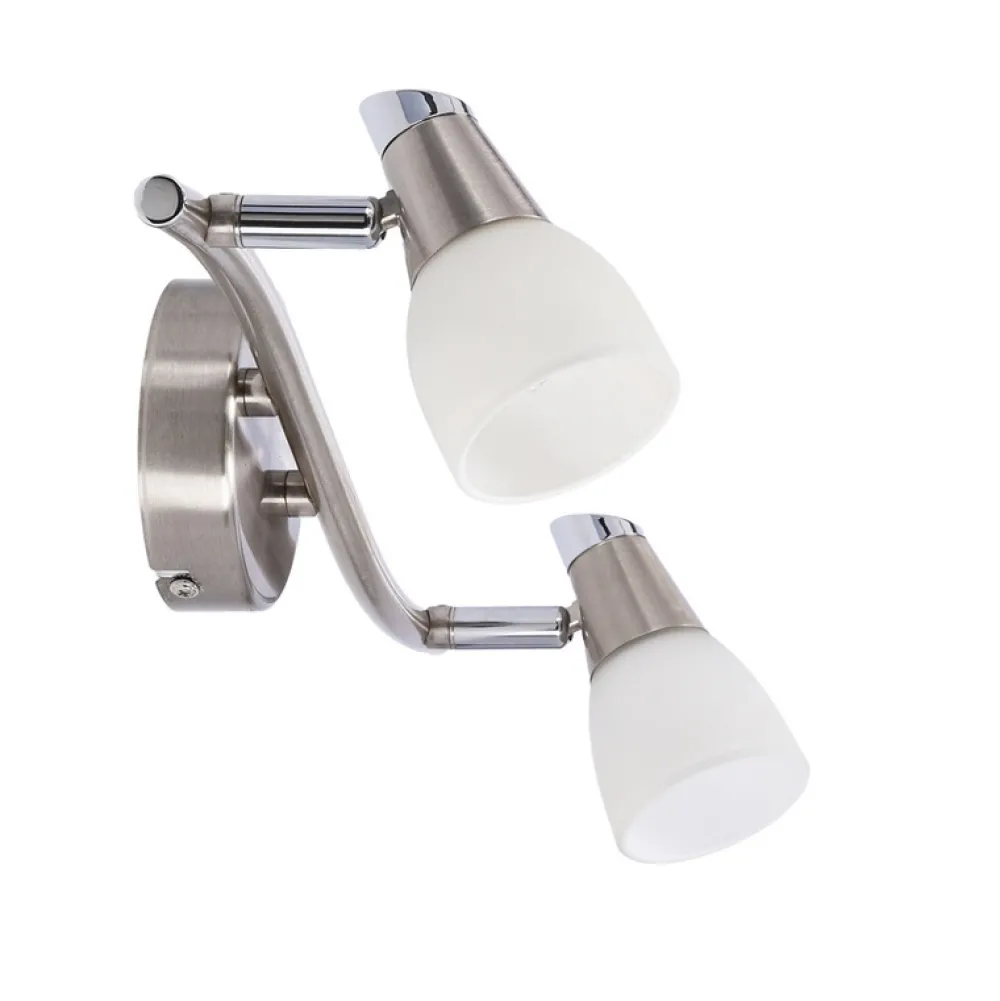 Minimalistyczny klosz malowany i piaskowany w połączeniu z dekoracyjną oprawką, osadzony na satynowej podstawie. Możliwość regulacji kąta nachylenia klosza pozwalająca na optymalne ustawienie kierunku padania światła.